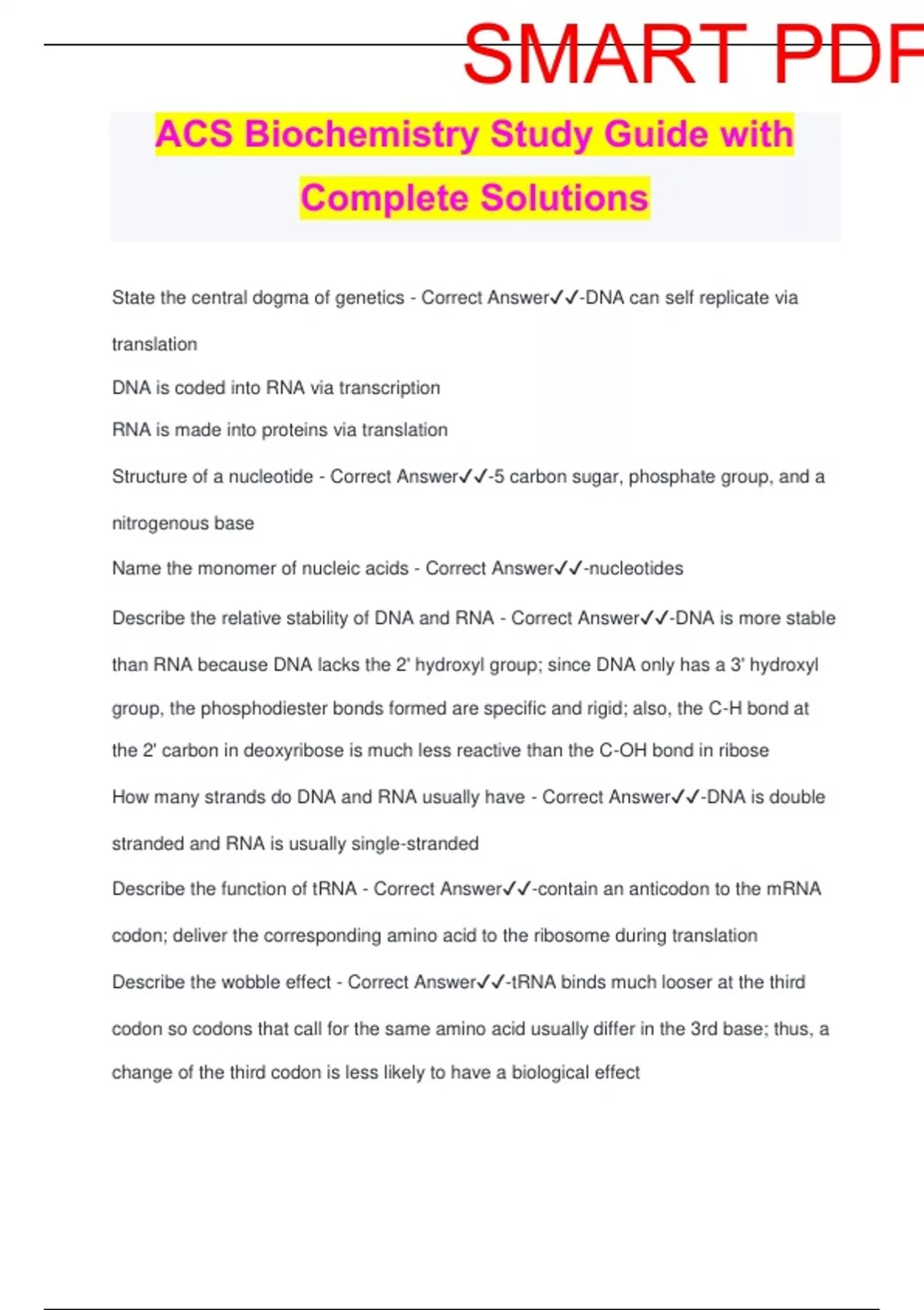 ACS Biochemistry Exam Bundle Pack with Complete Solutions