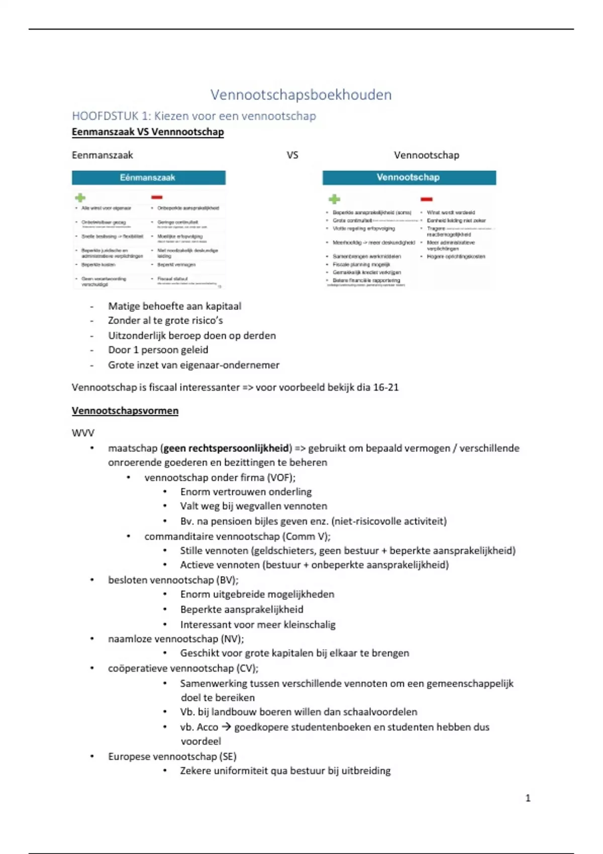 HOOFDSTUK 1: Kiezen voor een vennootschap