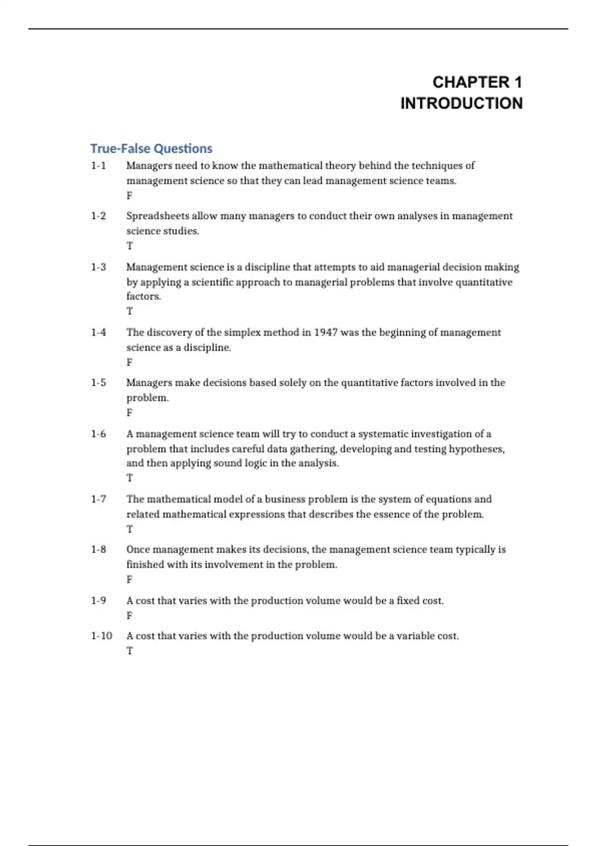 1-3 Management science is a discipline that attempts to aid managerial decision making