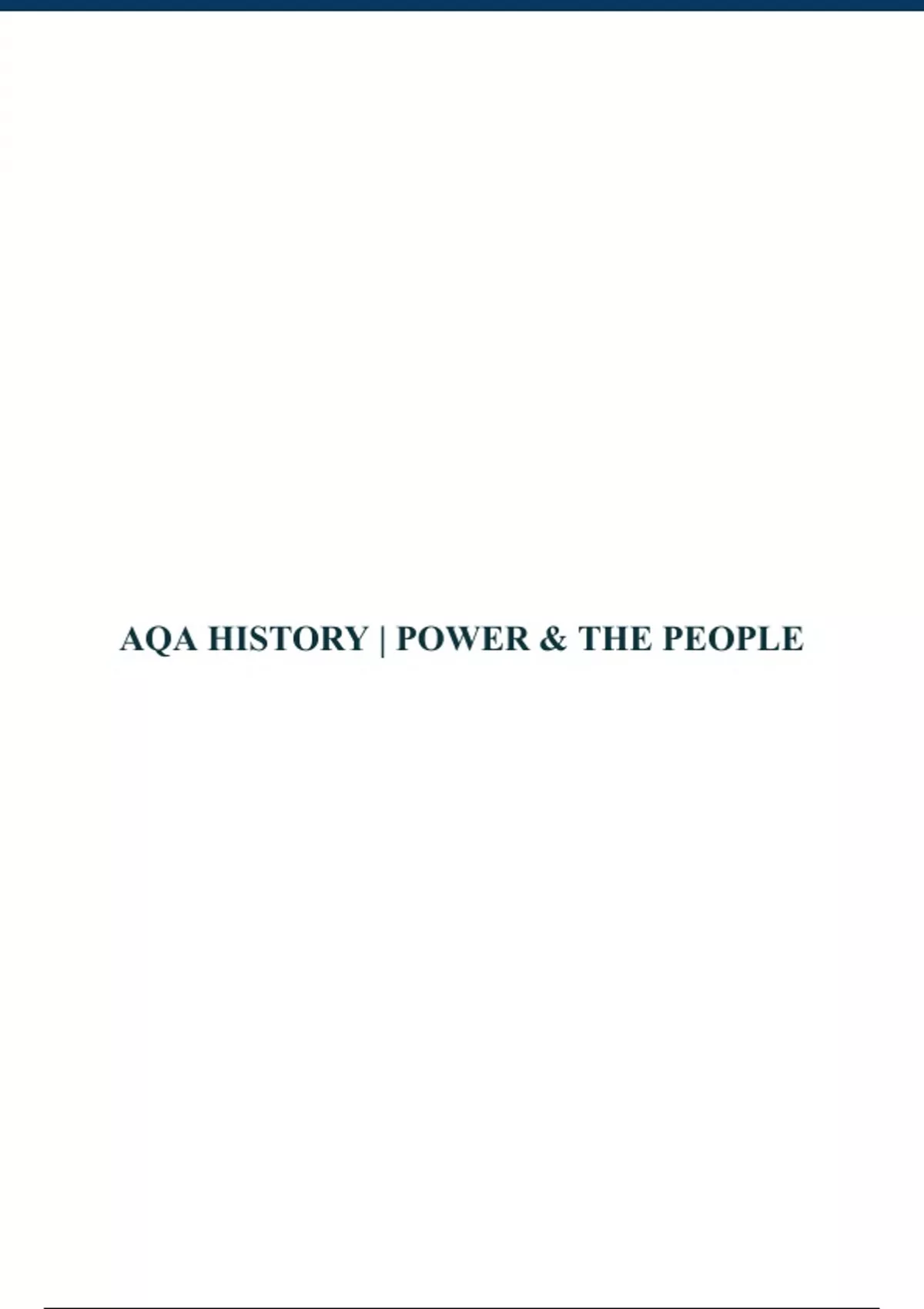 The document includes notes that cover the entirety of the AQA GCSE Paper 2 Section AB, 'Power and the People: c1170 to the present day'. They go in depth into the variety of contributing factors for each event (which are formatted chronologically), as well as covering their significance. They are structured in a way that complements the exam questions offered at GCSE. For the latter aspects that are seemingly more challenging, they go into greater depth to allow for better understanding.