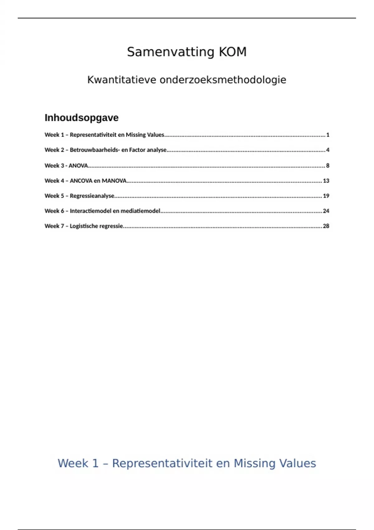 Samenvatting Kwantitatieve Onderzoeksmethodologie (KOM) MAN-BPRA247)