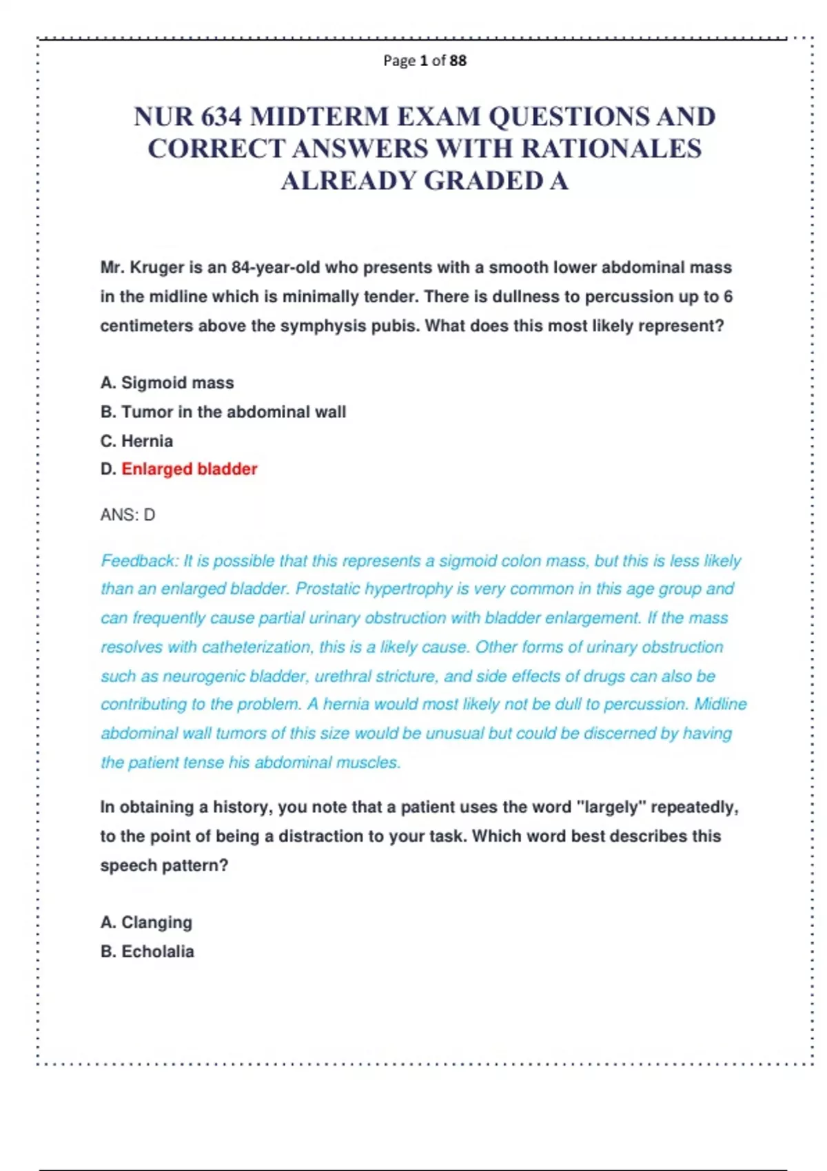 NUR 634 MIDTERM EXAM ALL LATEST QUESTIONS AND CORRECT ANSWERS WITH RATIONALES ALREADY GRADED A