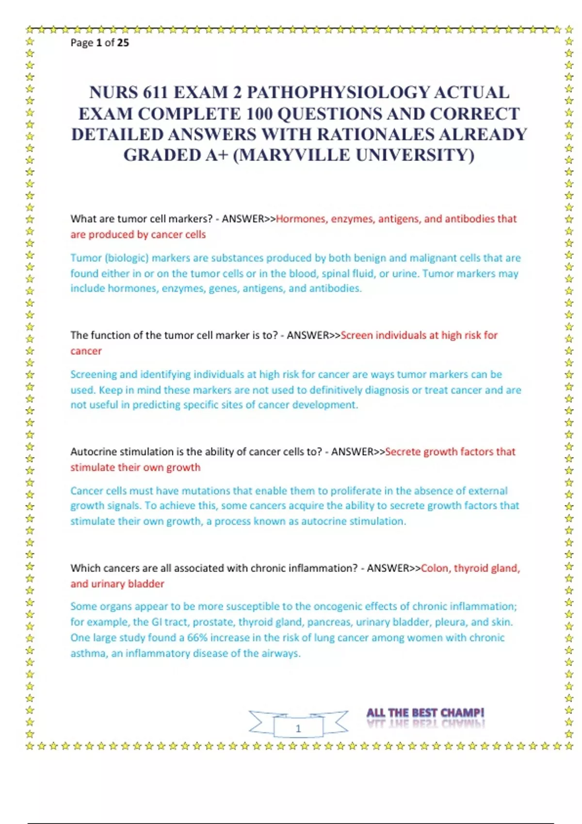 NURS 611 EXAM 2 PATHOPHYSIOLOGY ACTUAL EXAM COMPLETE 100 QUESTIONS AND CORRECT DETAILED ANSWERS WITH RATIONALES ALREADY GRADED A+ (MARYVILLE UNIVERSITY)