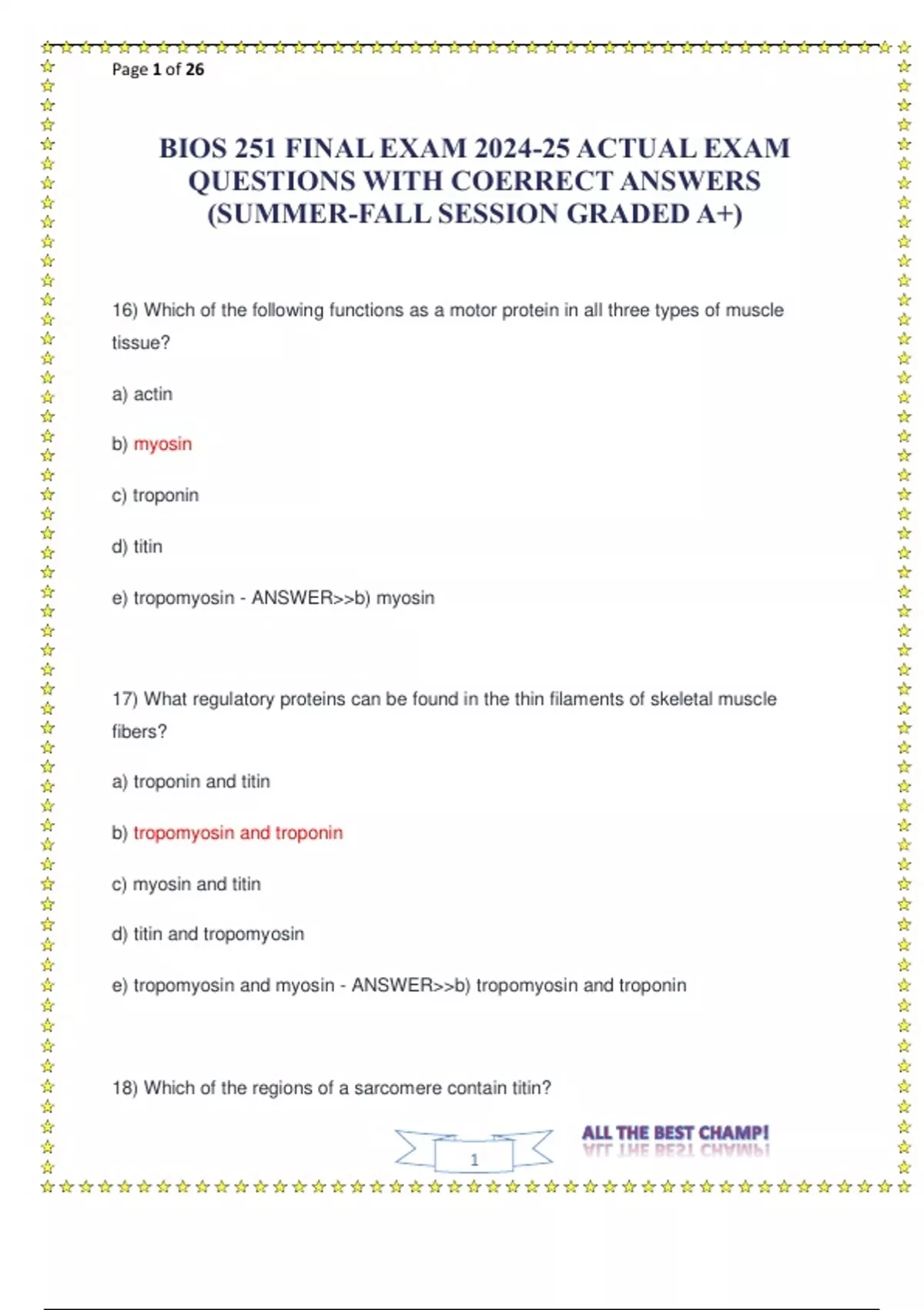 BIOS 251 FINAL EXAM ACTUAL EXAM QUESTIONS WITH COERRECT ANSWERS (SUMMER-FALL SESSION GRADED A+)