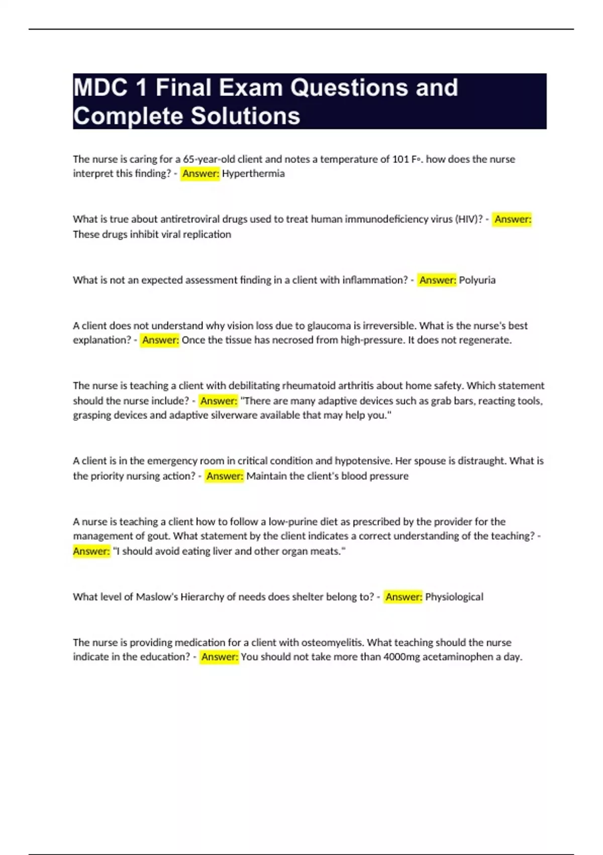 mdc 1 final exam questions and complete solutions