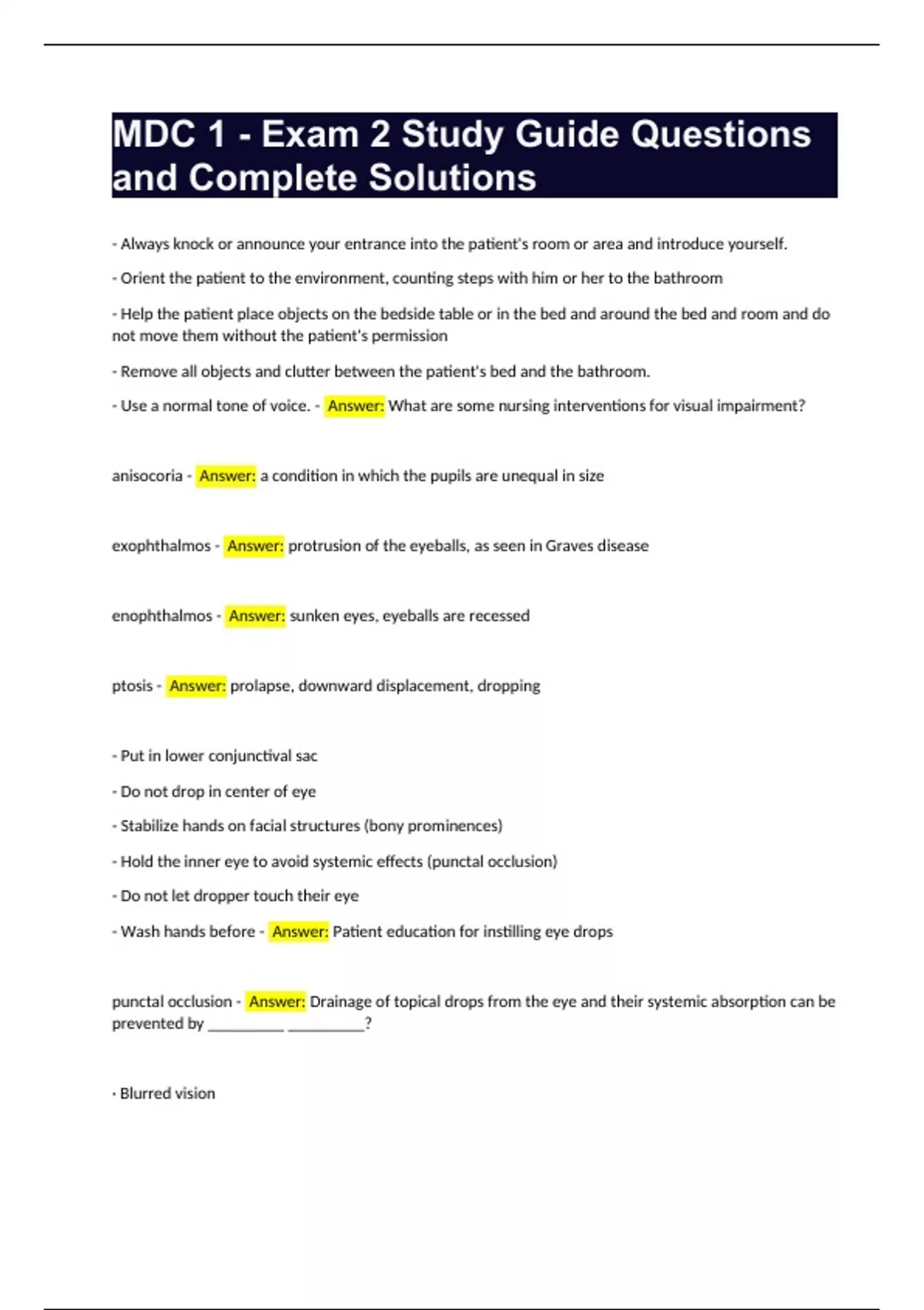 mdc 1 exam 2 study guide questions and complete