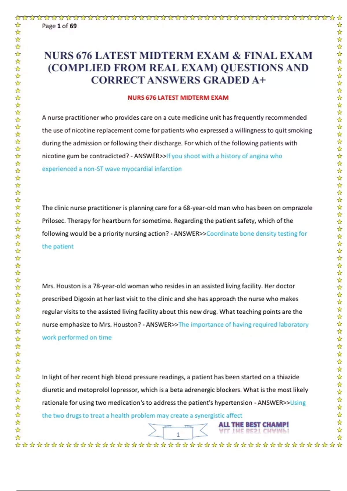 NURS 676 MIDTERM EXAM & FINAL EXAM (COMPLIED FROM REAL EXAM) QUESTIONS AND CORRECT ANSWERS GRADED A+