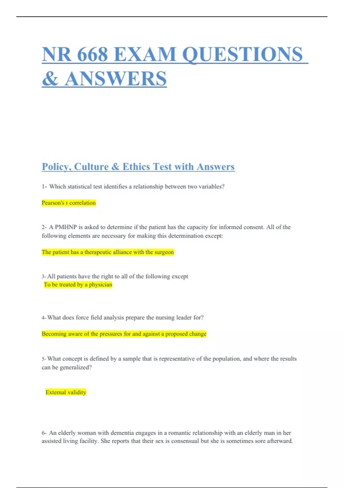 Policy, Culture & Ethics Test with Answers