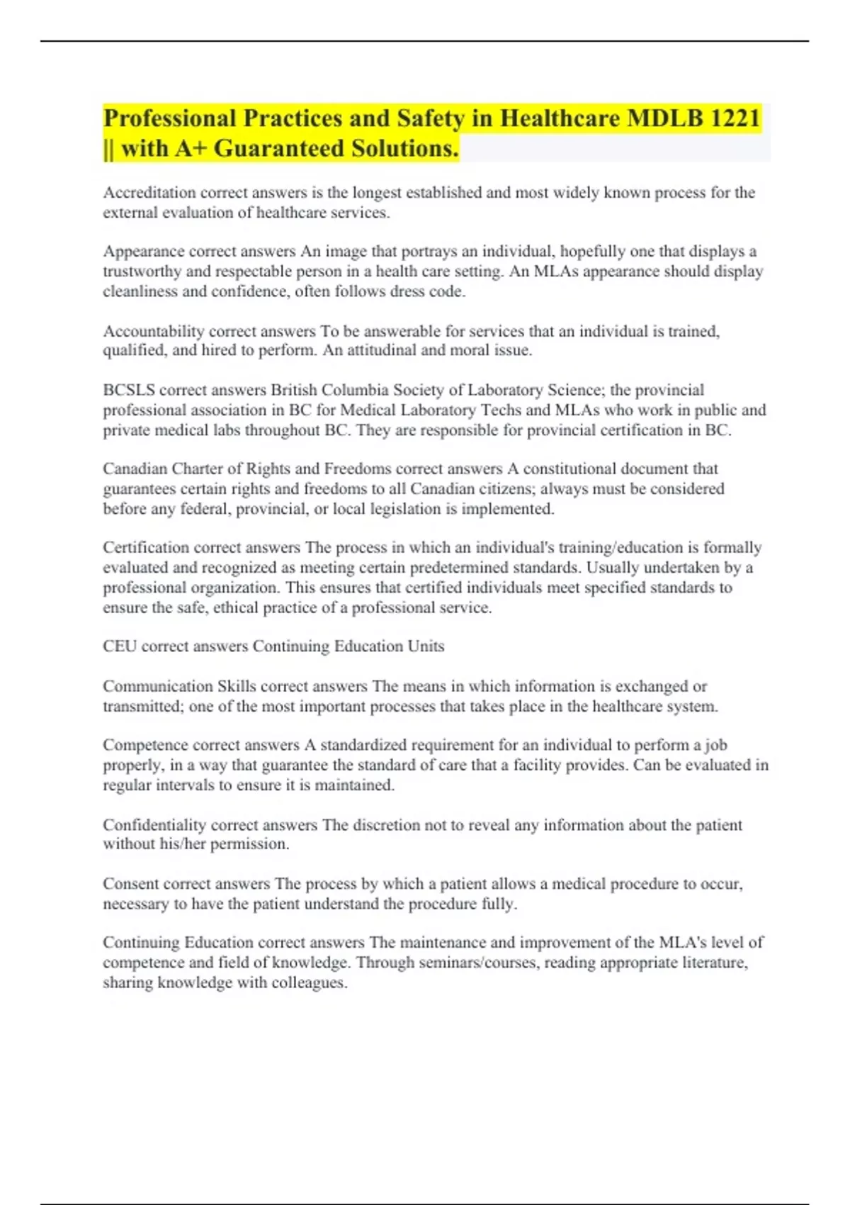 Professional Practices and Safety in Healthcare MDLB 1221 || with A+ Guaranteed Solutions.