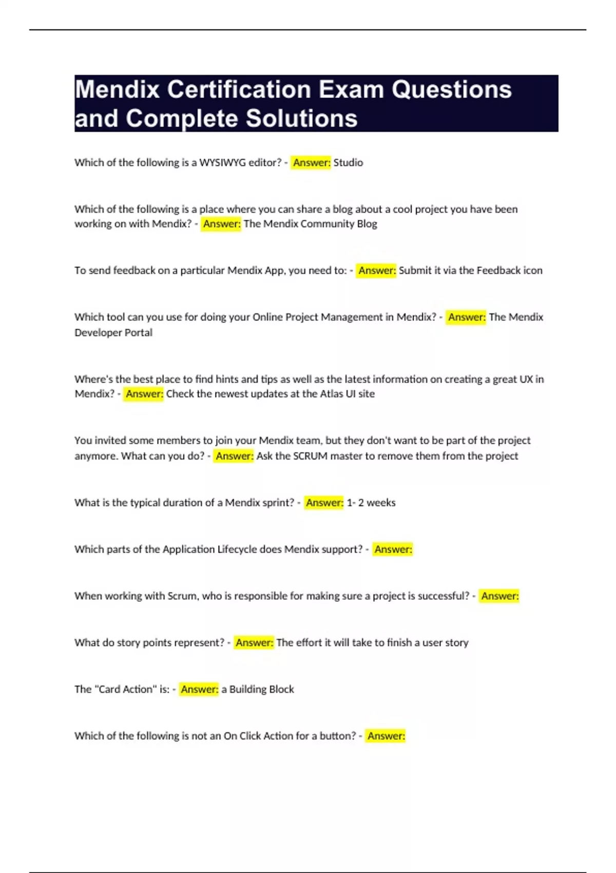 mendix certification exam questions and complete s