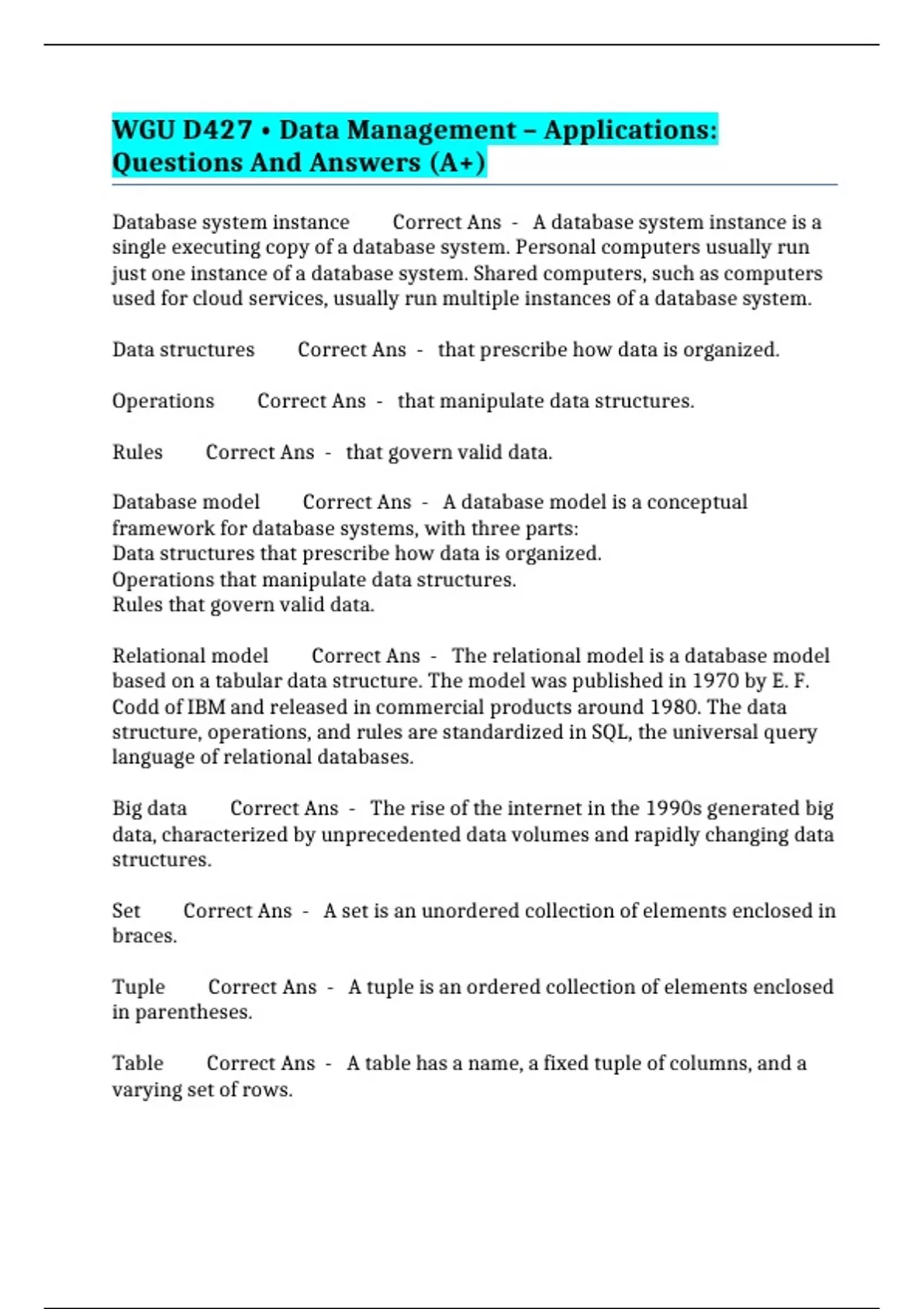 WGU D427 • Data Management – Applications: Questions And Answers (A+)