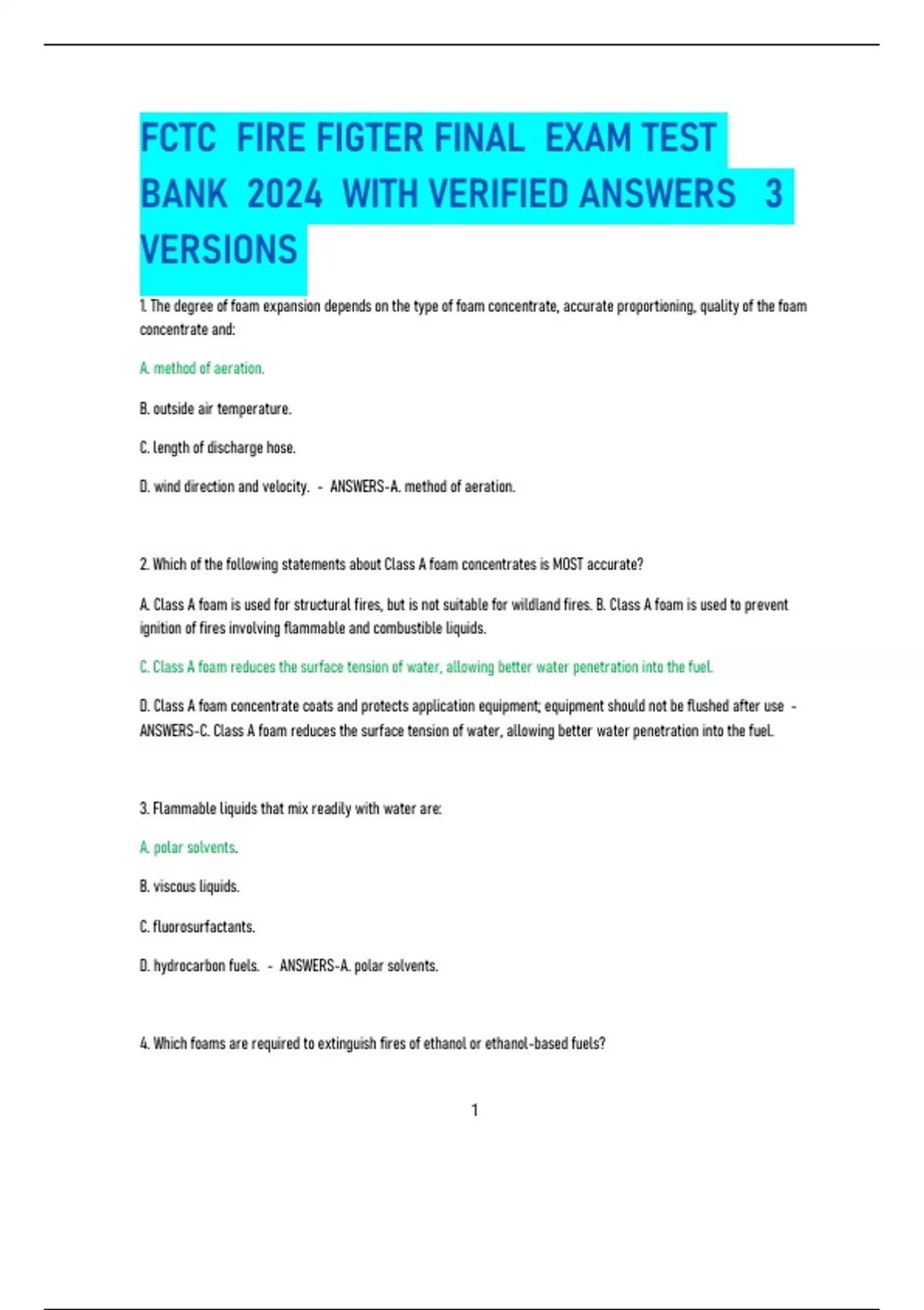FCTC FIRE FIGTER FINAL EXAM TEST BANK 2024 WITH VERIFIED ANSWERS 3 VERSIONS FCTC FIRE FIGTER FINAL EXAM TEST BANK 2024 WITH VERIFIED ANSWERS 3 VERSIONS FCTC FIRE FIGTER FINAL EXAM TEST BANK 2024 WITH VERIFIED ANSWERS 3 VERSIONS