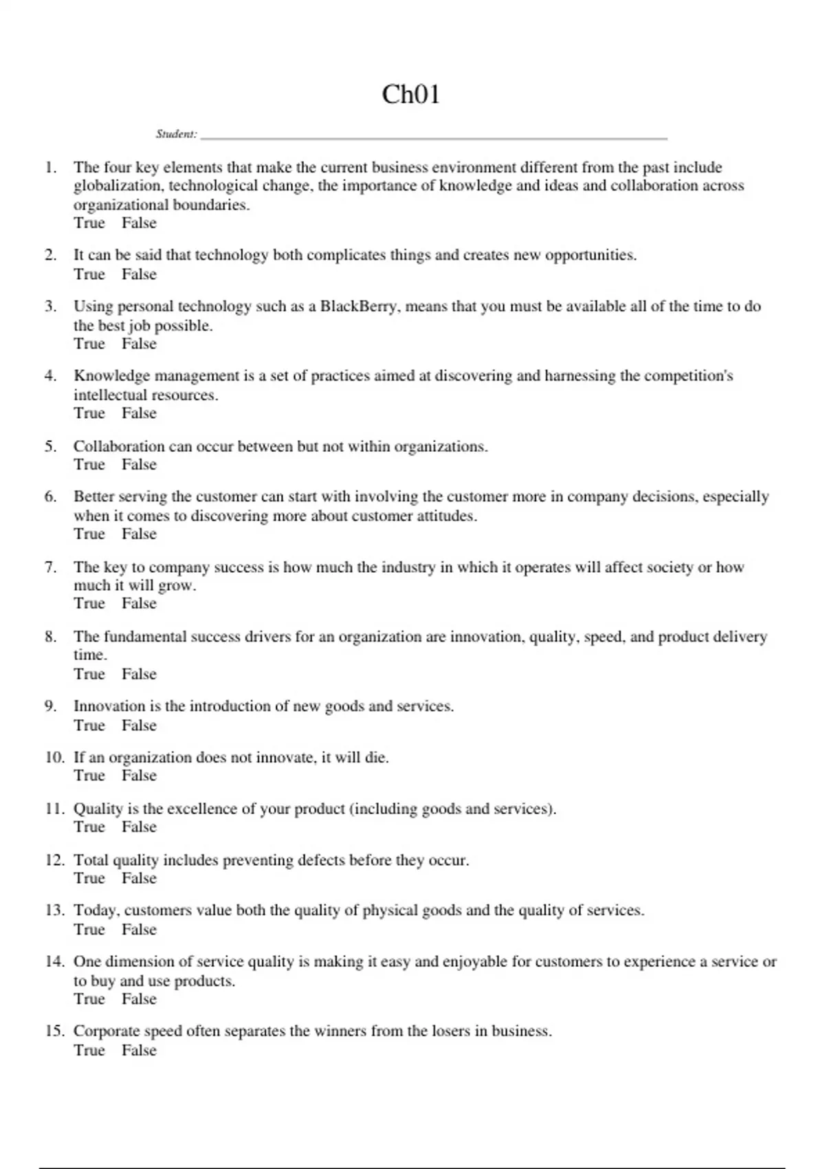 17. Managing for competitive advantage includes delivering innovation, quality, service, speed, and cost
