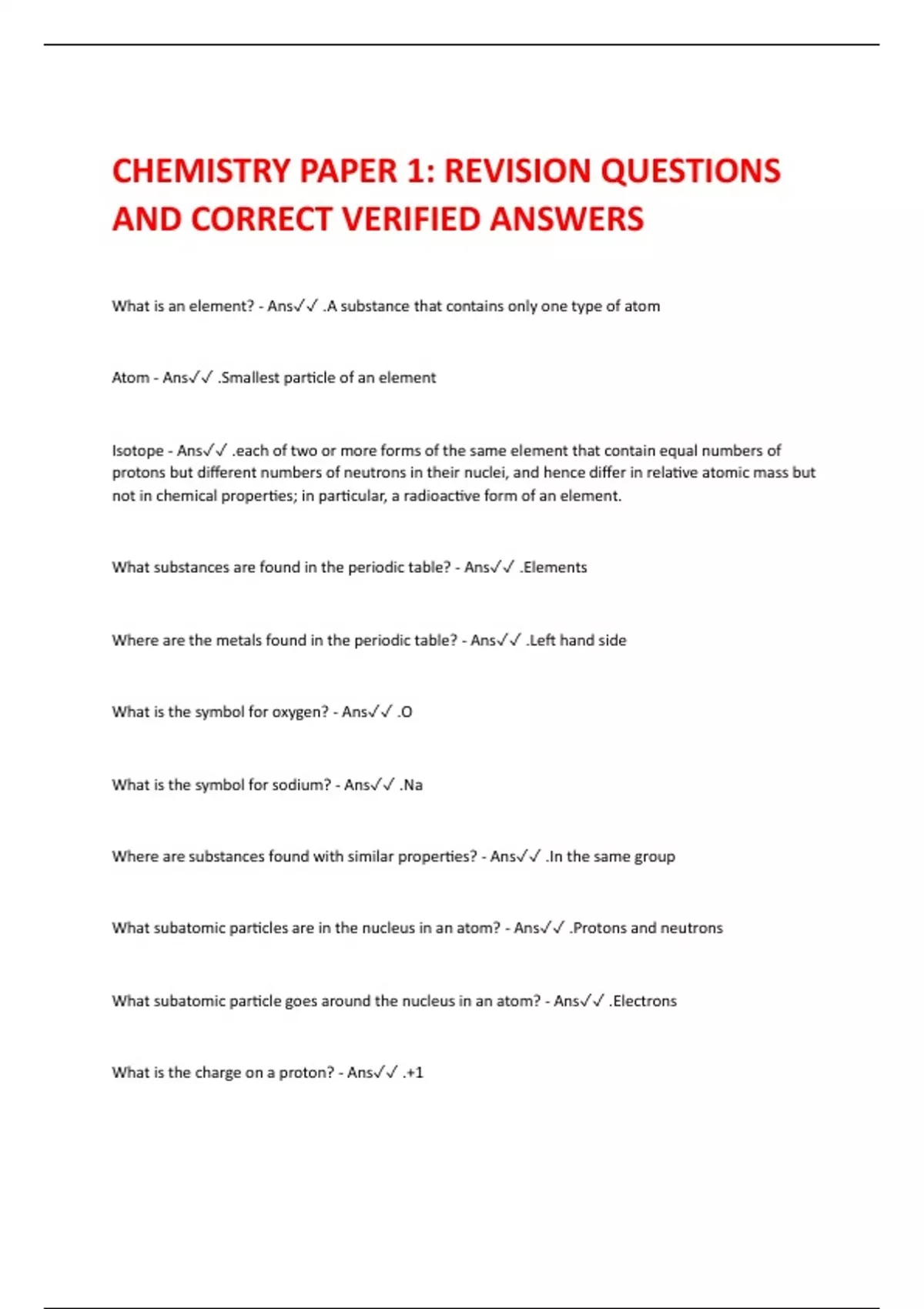 chemistry paper 1 revision questions and correct