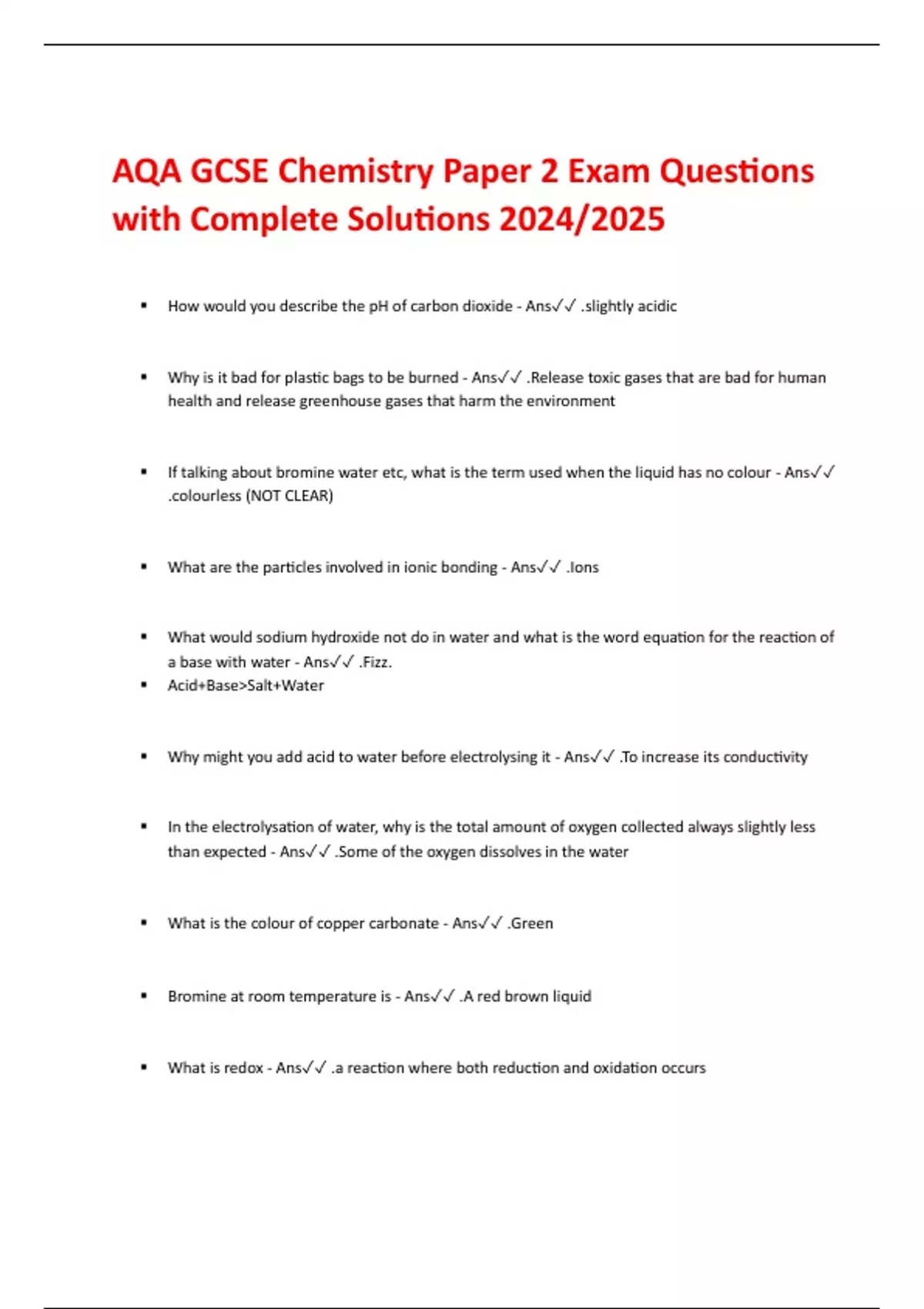 AQA GCSE Chemistry Paper 2 Exam Questions with Complete Solutions 2024/2025