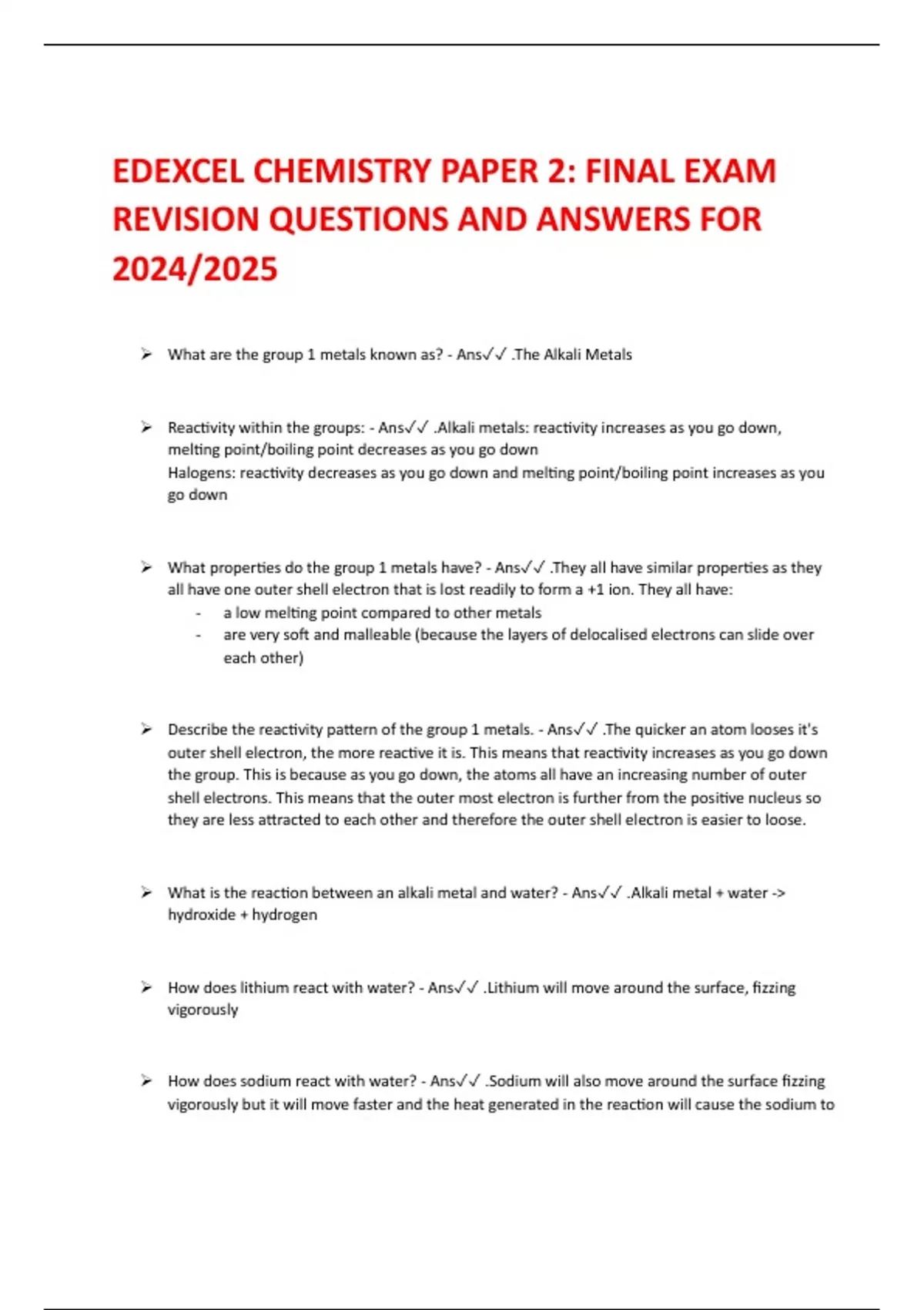 EDEXCEL CHEMISTRY PAPER 2: FINAL EXAM REVISION QUESTIONS AND ANSWERS FOR 2024/2025