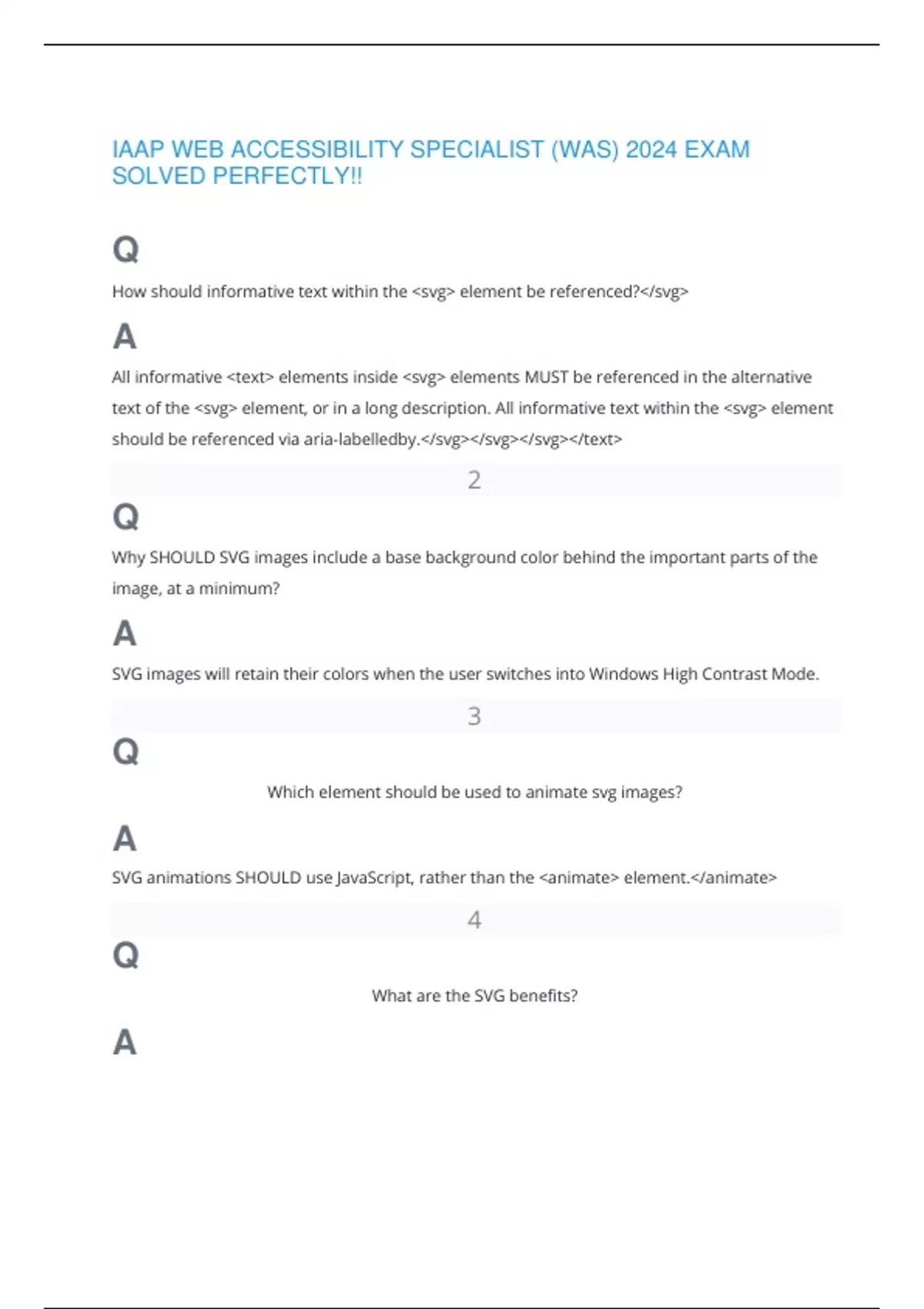 IAAP WEB ACCESSIBILITY SPECIALIST (WAS) 2024 EXAM SOLVED PERFECTLY!!