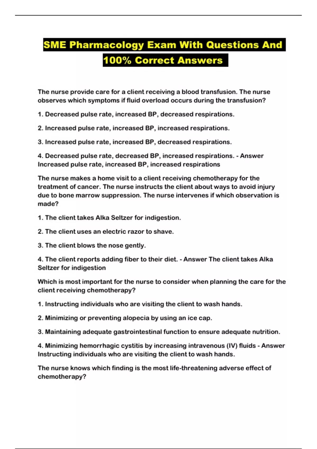 SME Pharmacology Exam With Questions And 100% Correct Answers ...