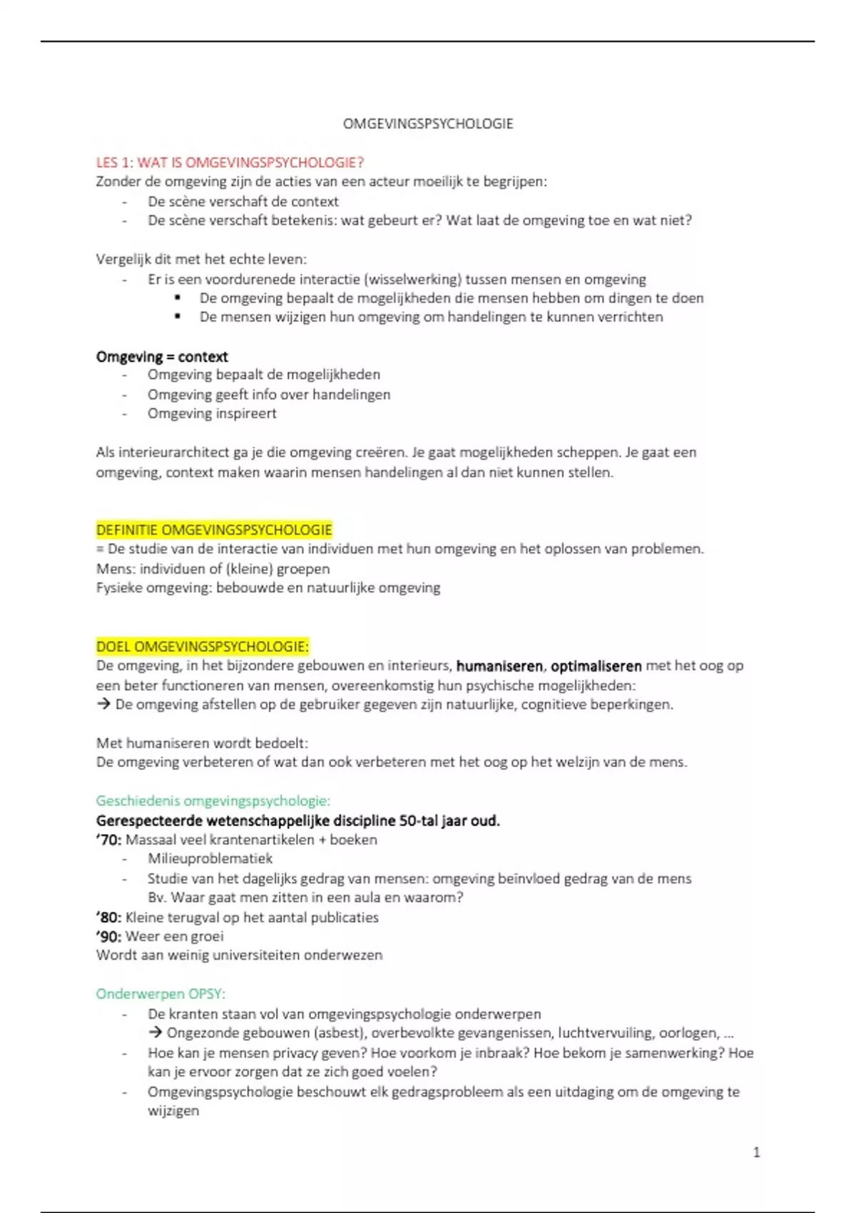 LES 1: WAT IS OMGEVINGSPSYCHOLOGIE?