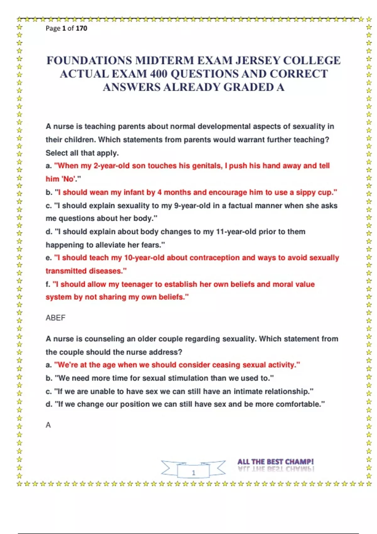 FOUNDATIONS MIDTERM EXAM JERSEY COLLEGE ACTUAL EXAM 400 QUESTIONS AND CORRECT ANSWERS ALREADY GRADED A.