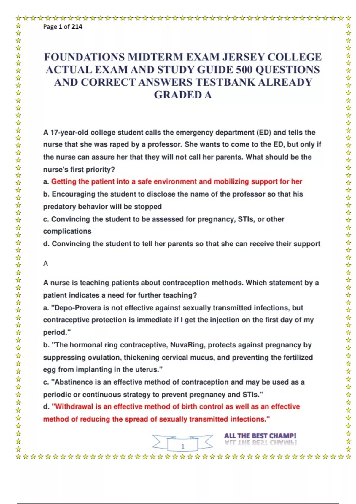 FOUNDATIONS MIDTERM EXAM JERSEY COLLEGE ACTUAL EXAM AND STUDY GUIDE 500 QUESTIONS AND CORRECT ANSWERS TESTBANK ALREADY GRADED A.