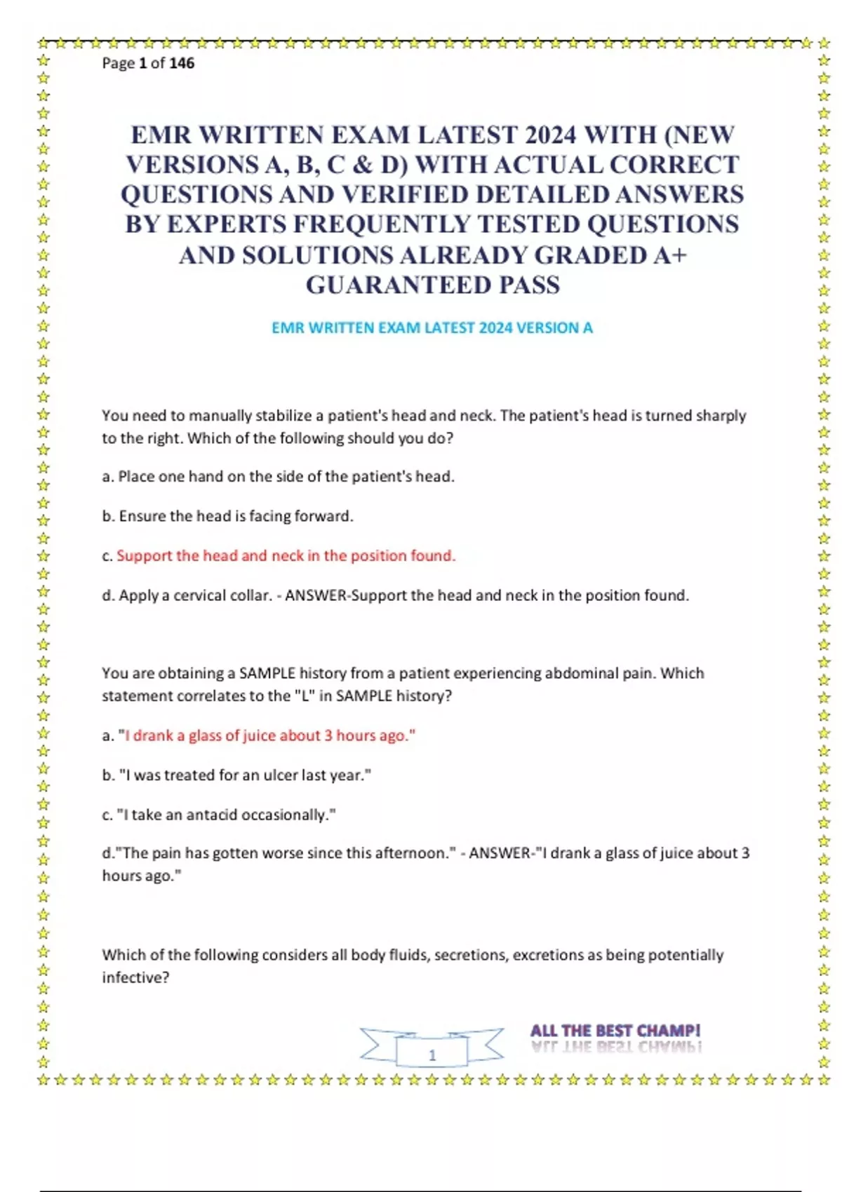 EMR WRITTEN EXAM LATEST 2024 WITH ( VERSIONS A, B, C & D) QUESTIONS AND ANSWERS ALREADY GRADED A+