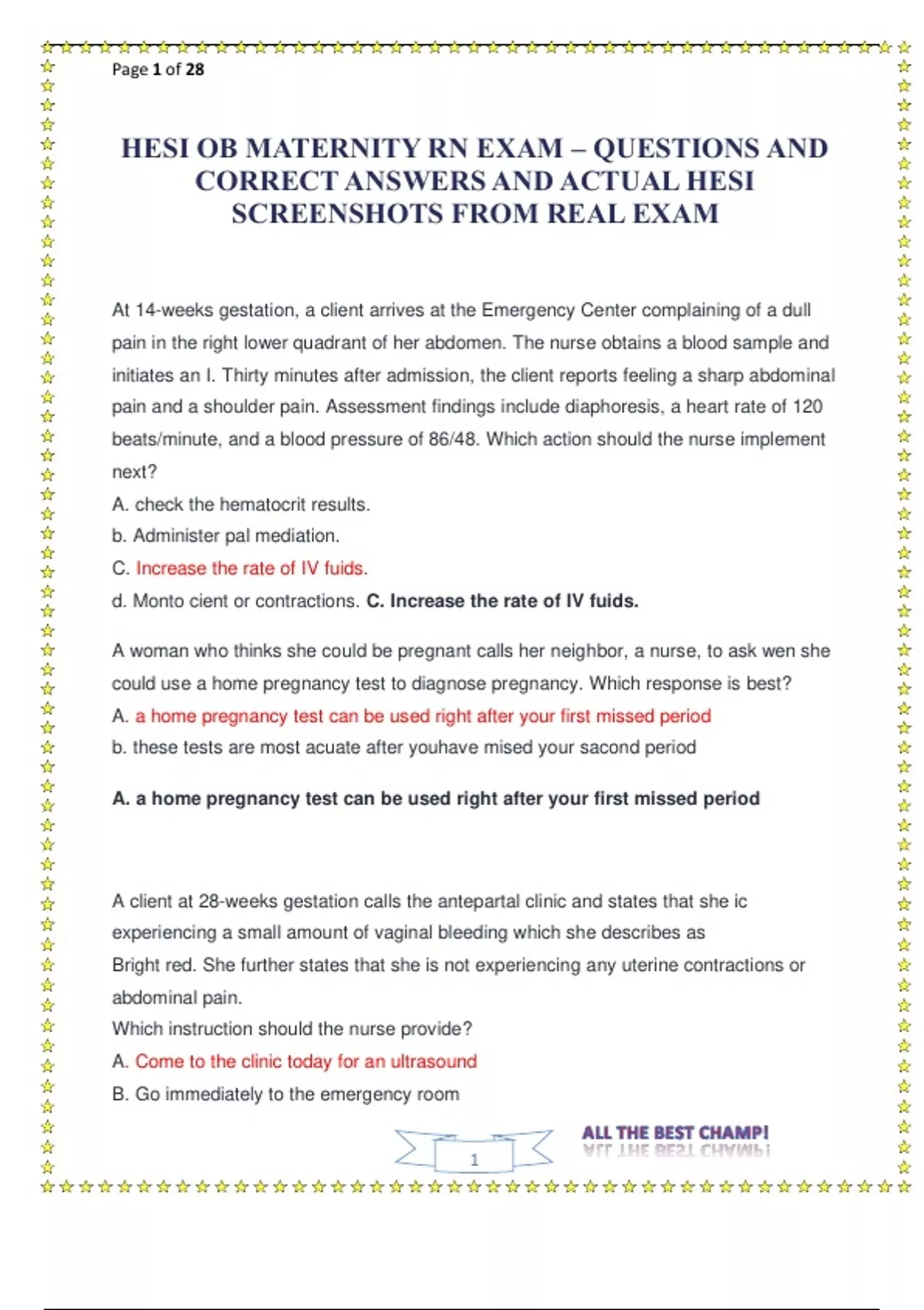 HESI OB MATERNITY RN EXAM – QUESTIONS AND CORRECT ANSWERS AND ACTUAL HESI SCREENSHOTS FROM REAL EXAM