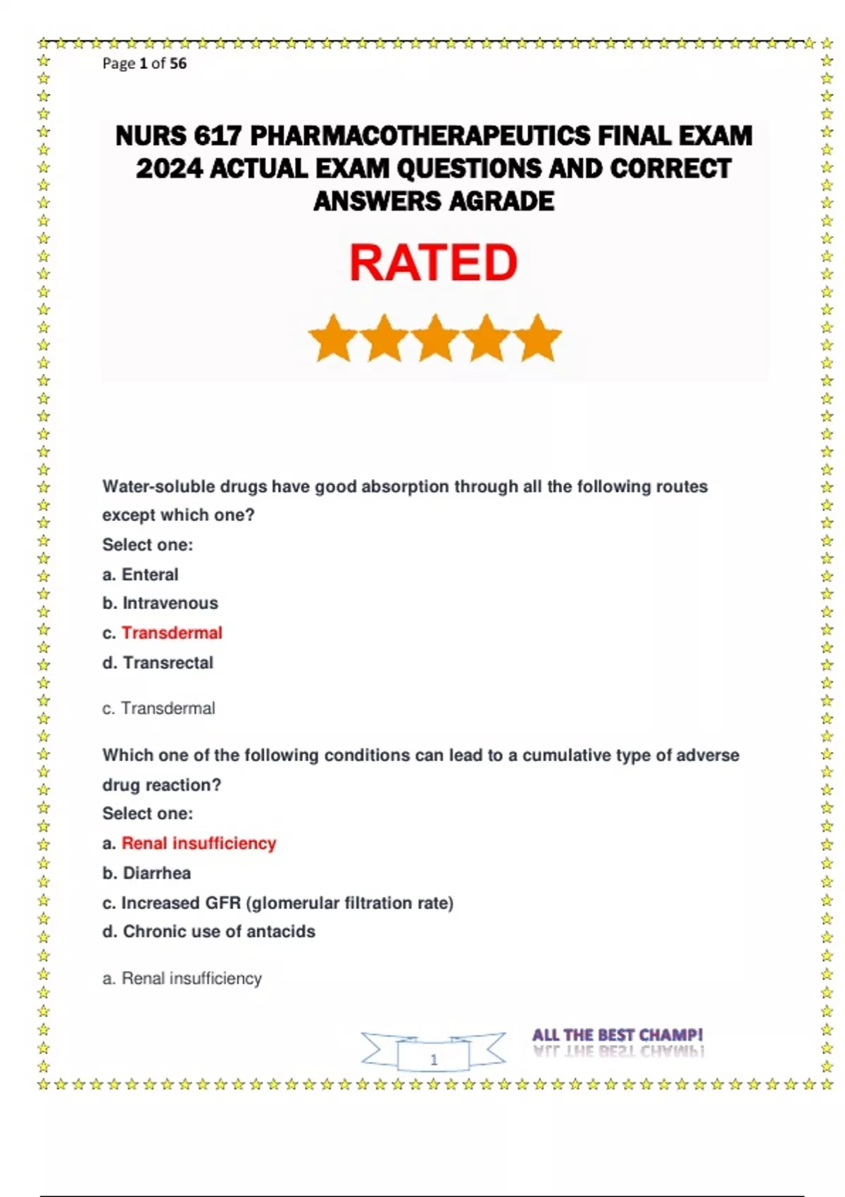 NURS 617 PHARMACOTHERAPEUTICS FINAL EXAM 2024 ACTUAL EXAM QUESTIONS AND CORRECT ANSWERS AGRADE