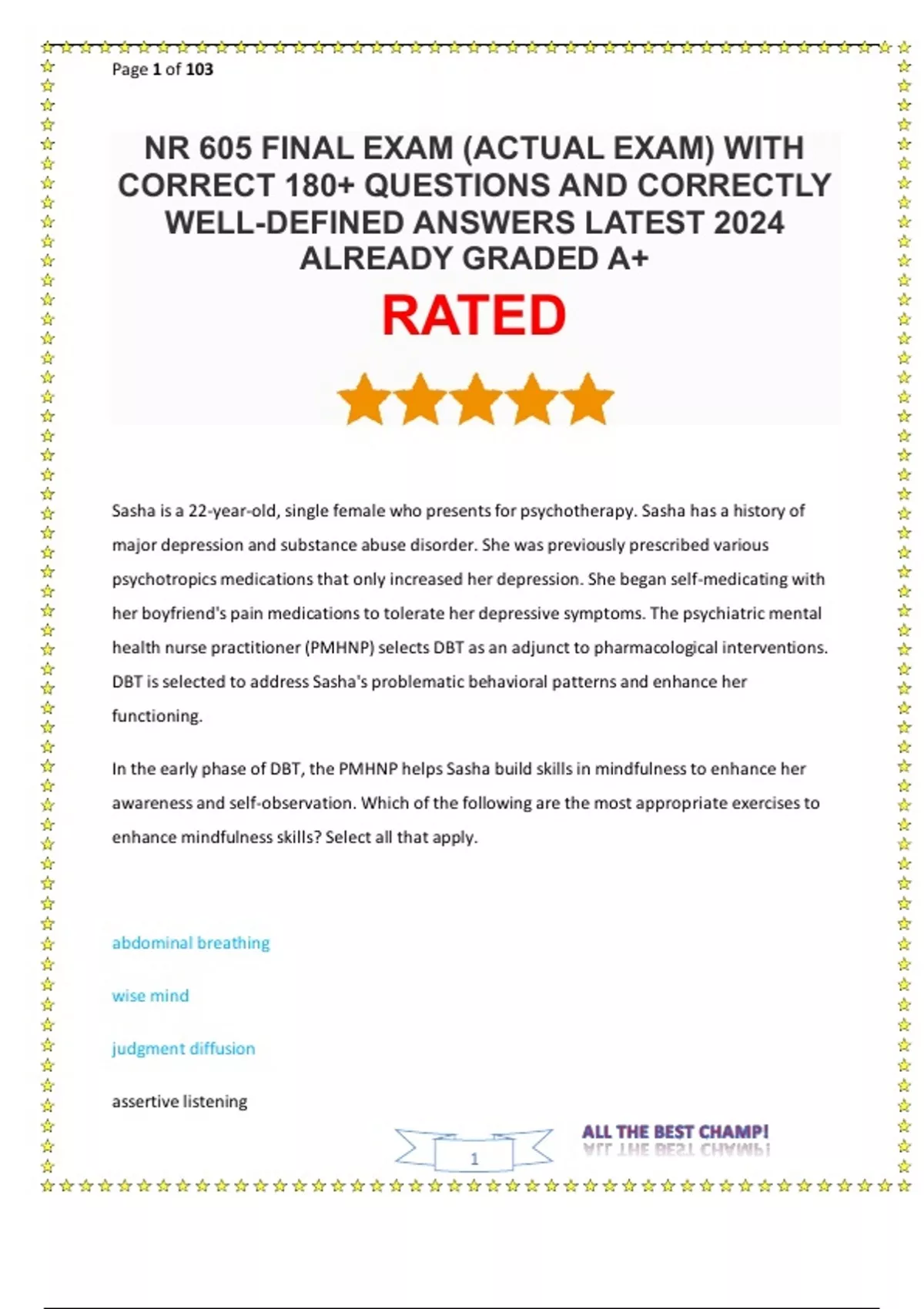 NR 605 FINAL EXAM (ACTUAL EXAM) WITH