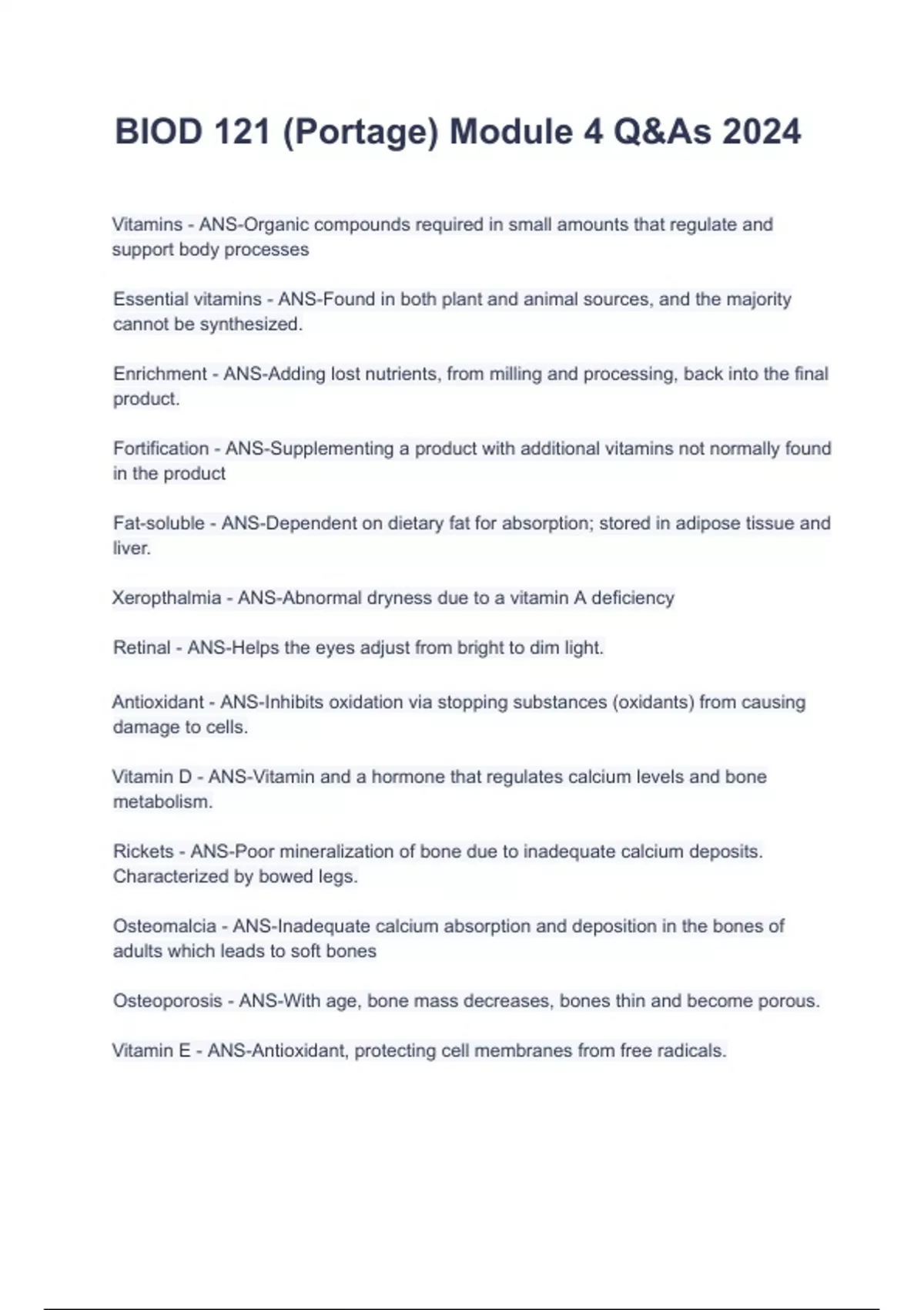 BIOD 121 (Portage) Module 4 Q&As 2024