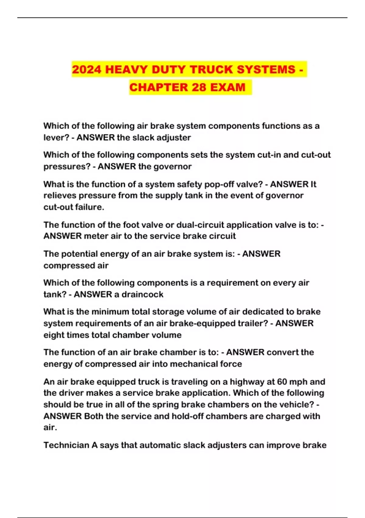 2024 HEAVY DUTY TRUCK SYSTEMS - CHAPTER 28 EXAM ...