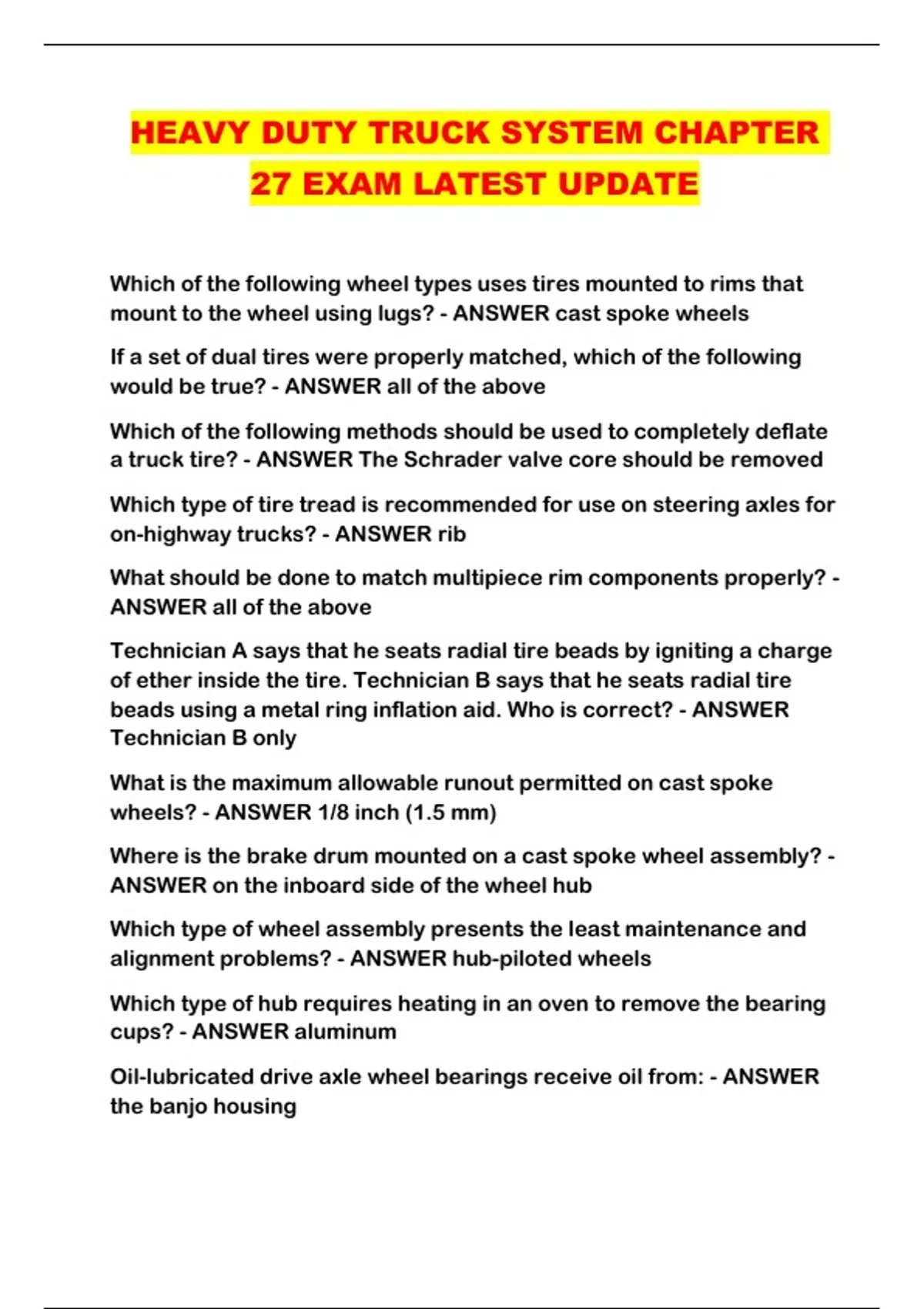 HEAVY DUTY TRUCK SYSTEM CHAPTER 27 EXAM LATEST UPDATE...
