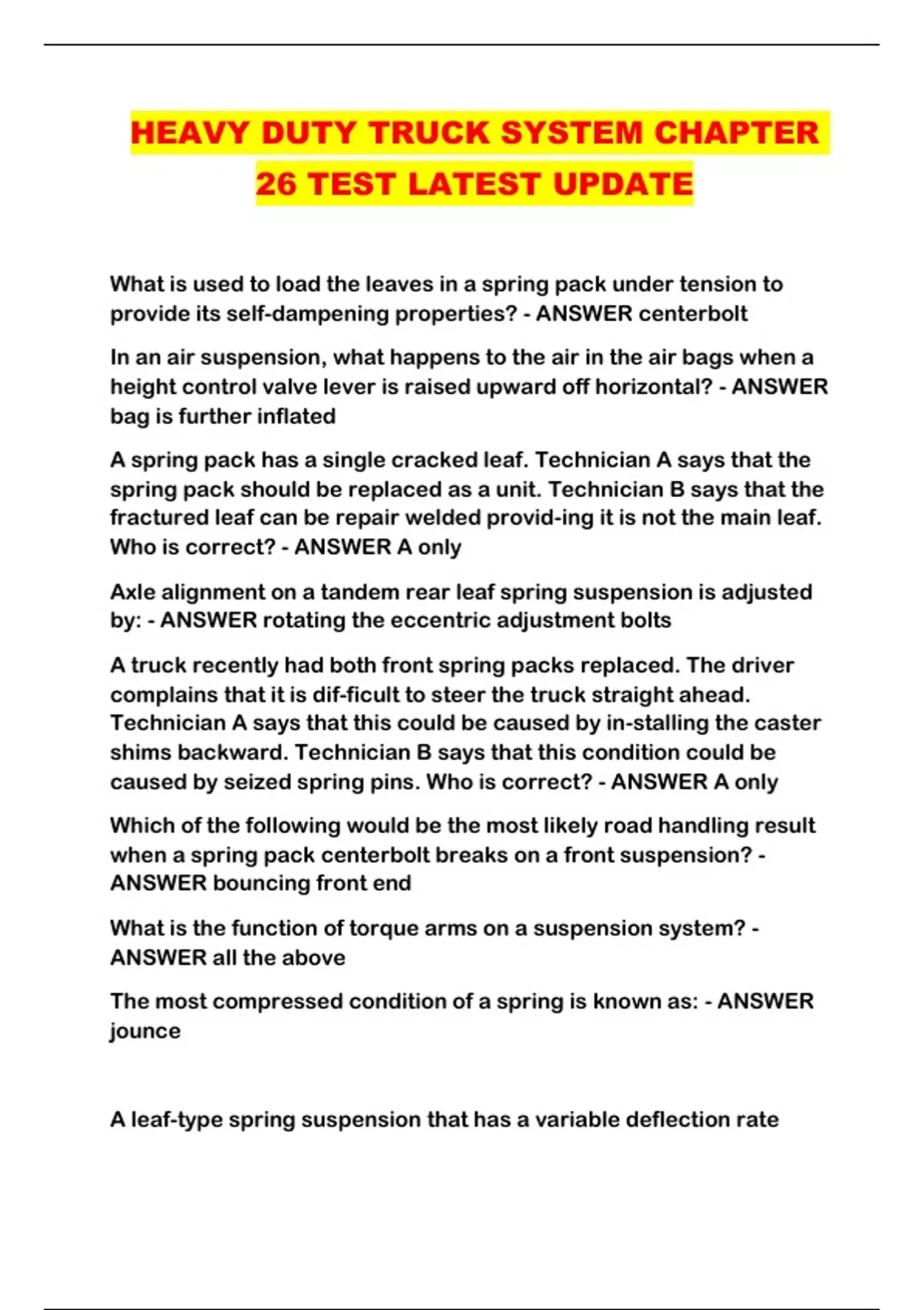 HEAVY DUTY TRUCK SYSTEM CHAPTER 26 TEST LATEST UPDATE...