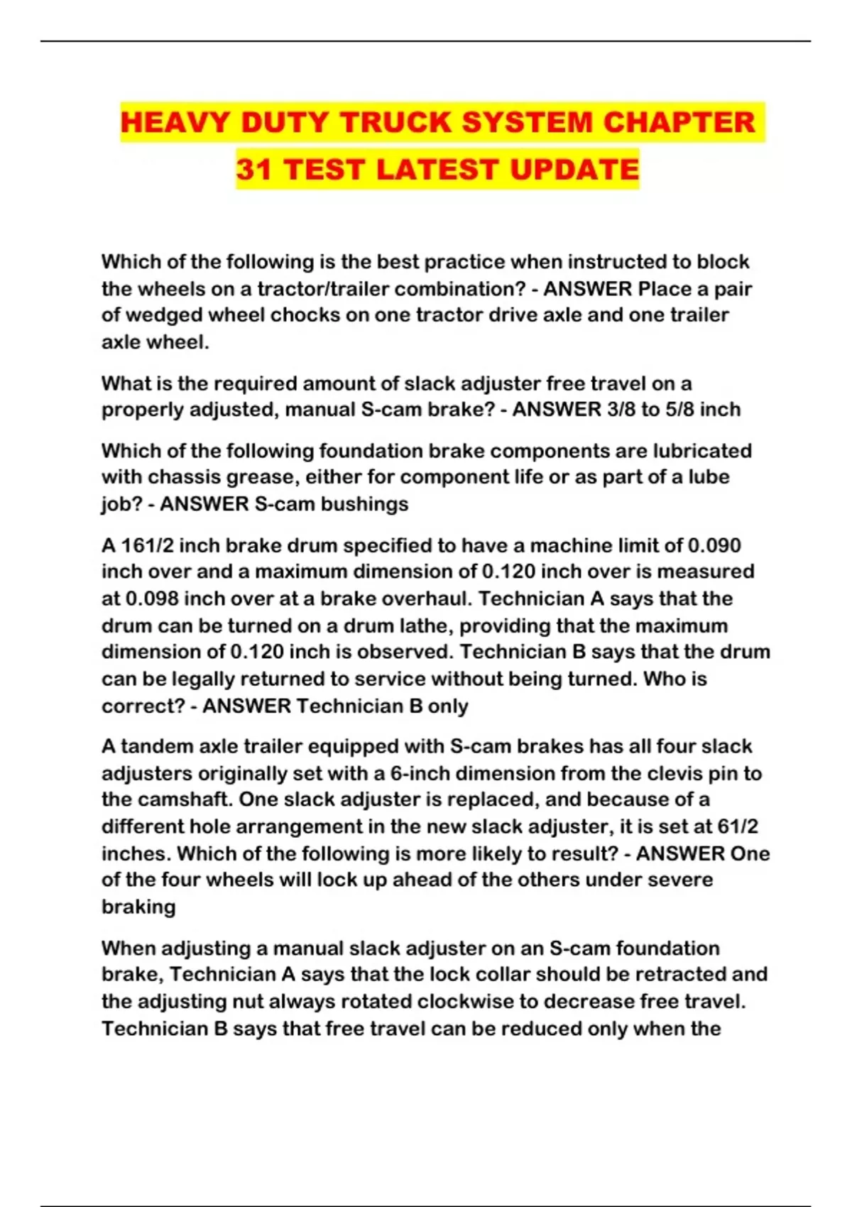 HEAVY DUTY TRUCK SYSTEM CHAPTER 31 TEST LATEST UPDATE...