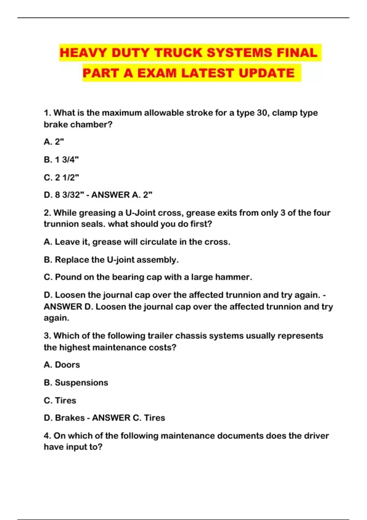 HEAVY DUTY TRUCK SYSTEMS FINAL PART A EXAM LATEST UPDATE