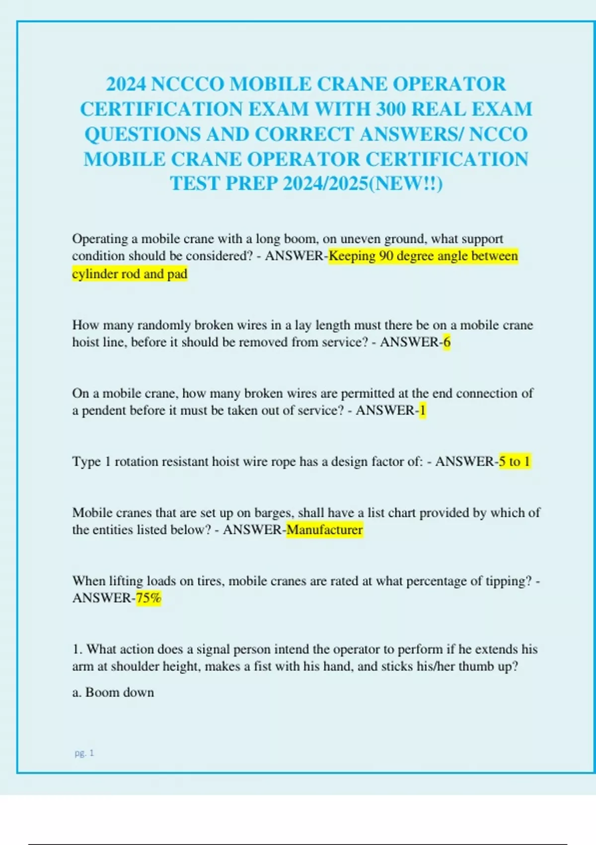 2024 NCCCO MOBILE CRANE OPERATOR CERTIFICATION EXAM WITH 300 REAL EXAM QUESTIONS AND CORRECT ANSWERS/ NCCO MOBILE CRANE OPERATOR CERTIFICATION TEST PREP 2024/2025(NEW!!)