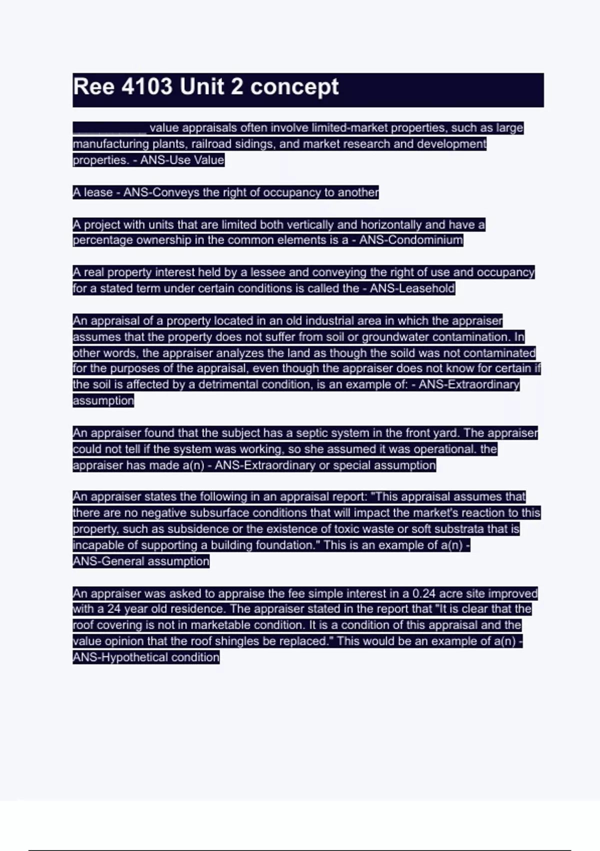 appraiser has made a(n) - ANS-Extraordinary or special assumption