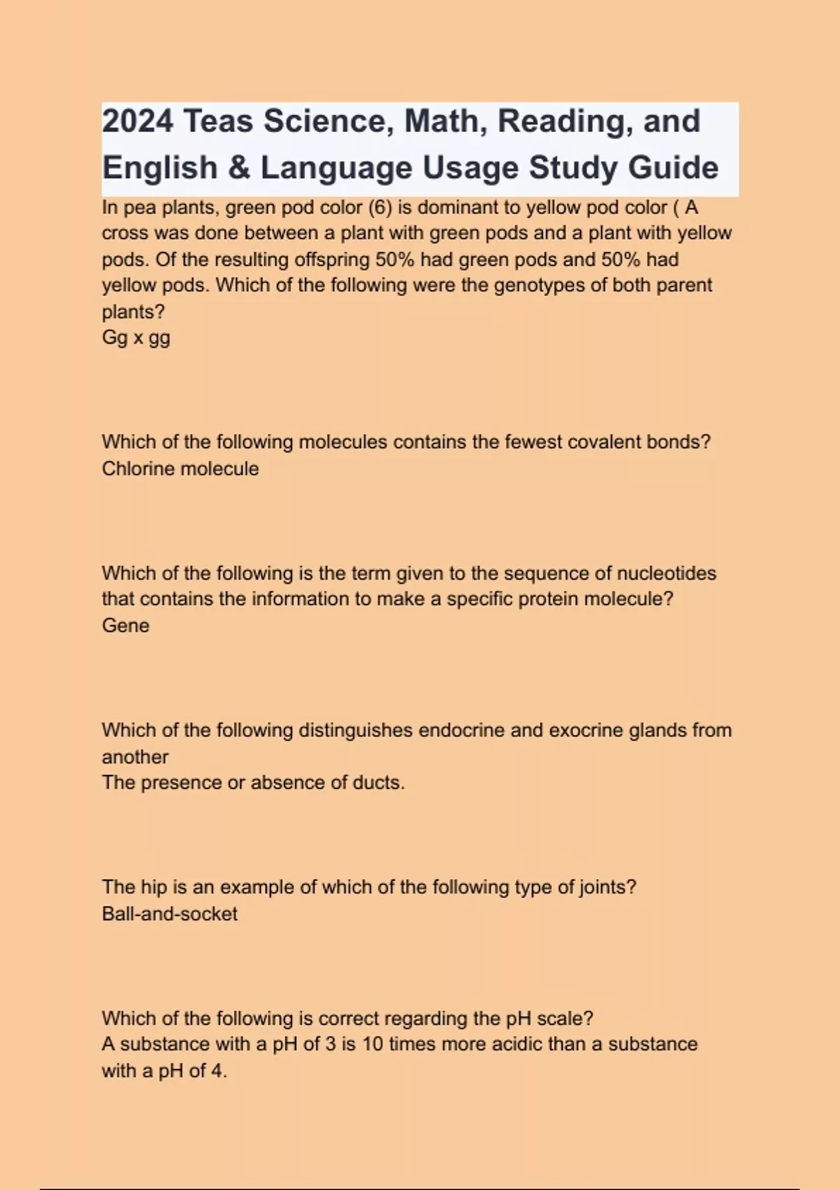 2024 Teas Science, Math, Reading, and English & Language Usage Study Guide Questions