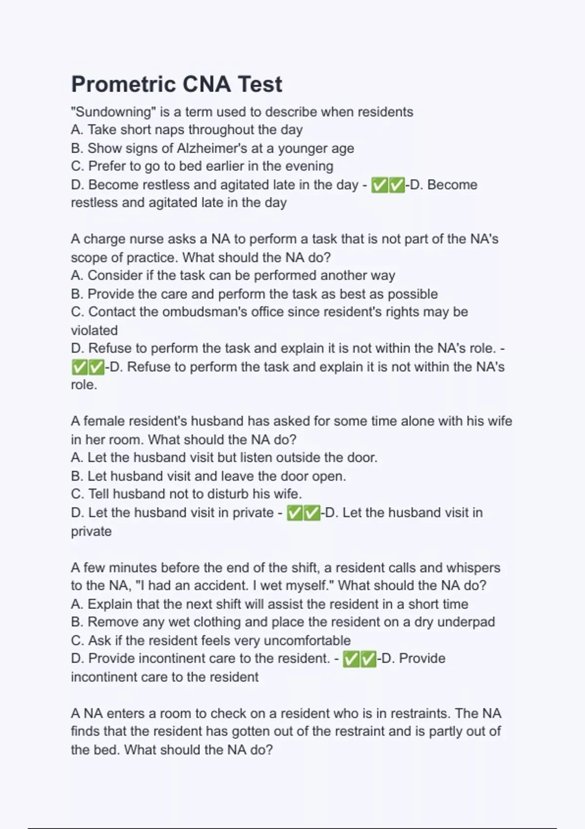 Prometric CNA Test Questions with verified correct answers - complete solution 2024.