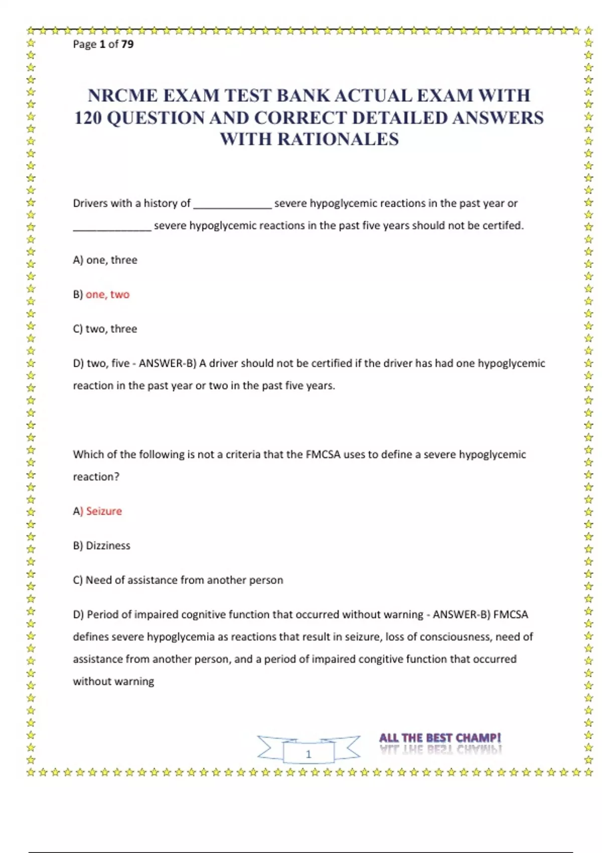 NRCME EXAM TEST BANK LATEST ACTUAL EXAM WITH 120 QUESTION AND CORRECT DETAILED ANSWERS WITH RATIONALES.
