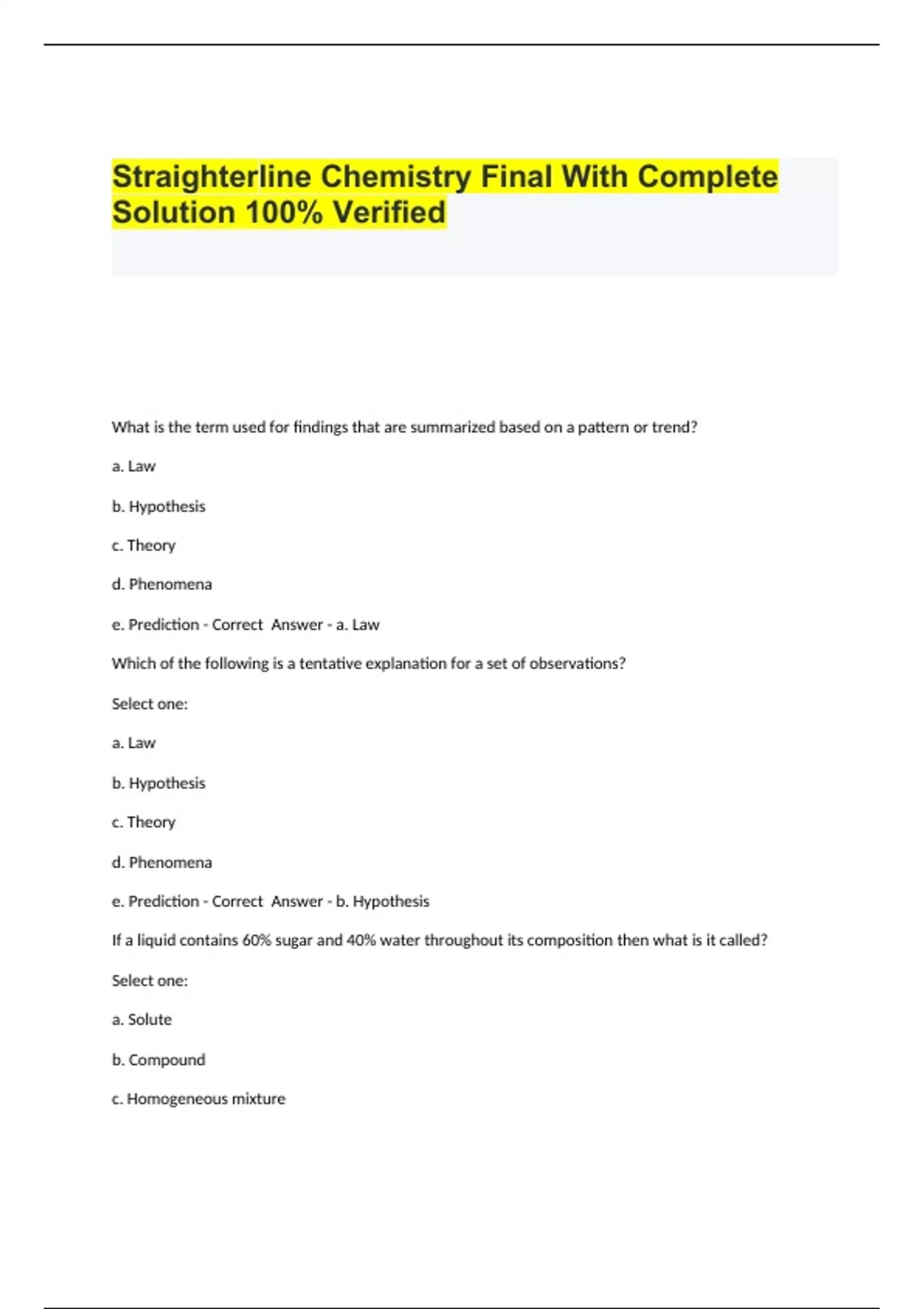 Straighterline Chemistry Final With Complete