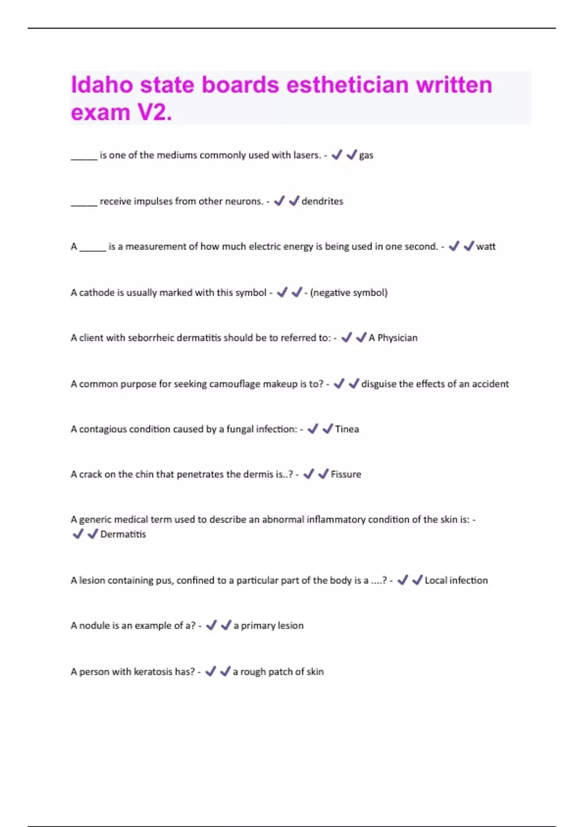 Idaho state boards esthetician written exam V2.Questions And Answers With Verified Solutions