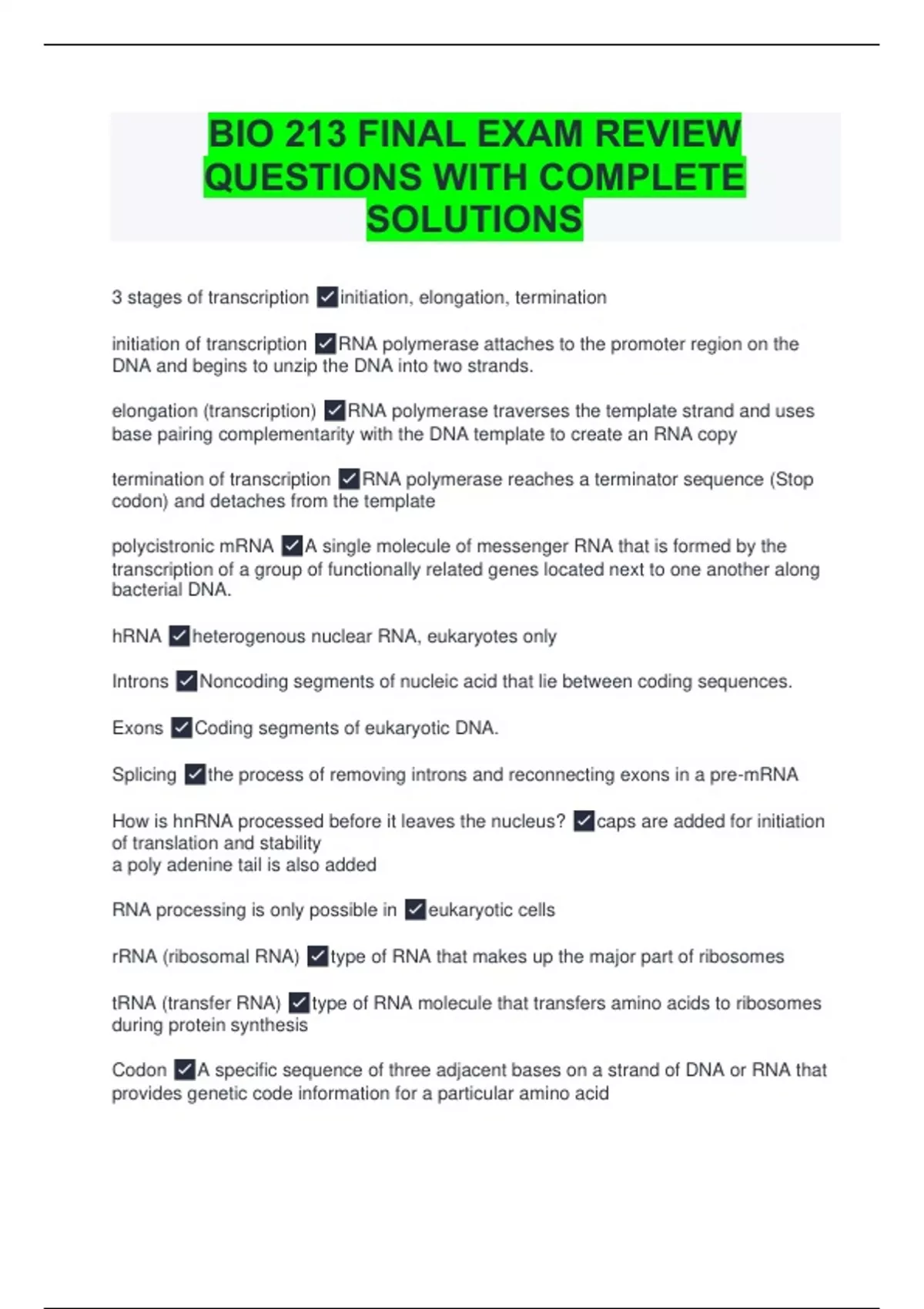 BIO 213 FINAL EXAM REVIEW QUESTIONS WITH COMPLETE SOLUTIONS