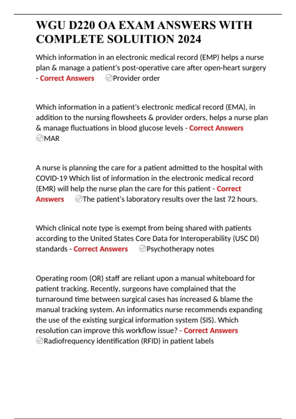 - WGU D220 OA EXA ANSWERWITH COMPLETE SOLUITION 2