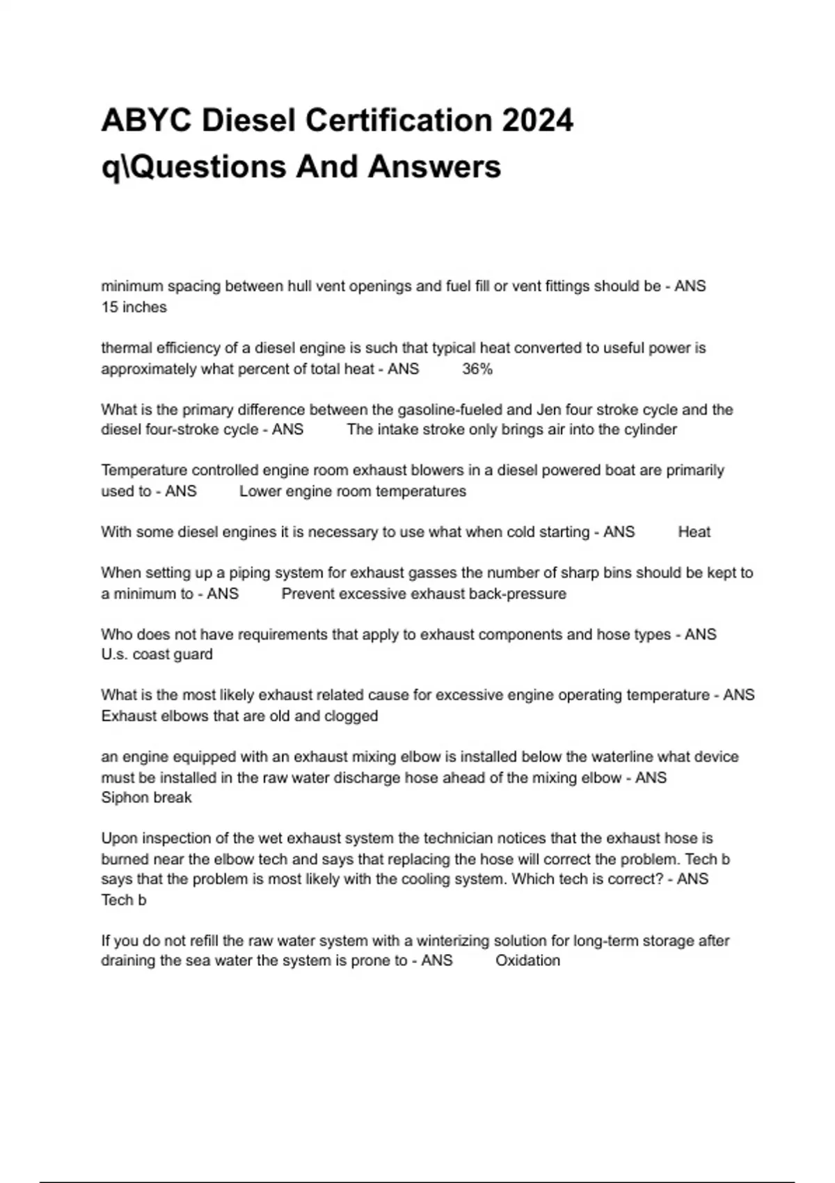 ABYC Diesel Certification 2024 Questions And Answers
