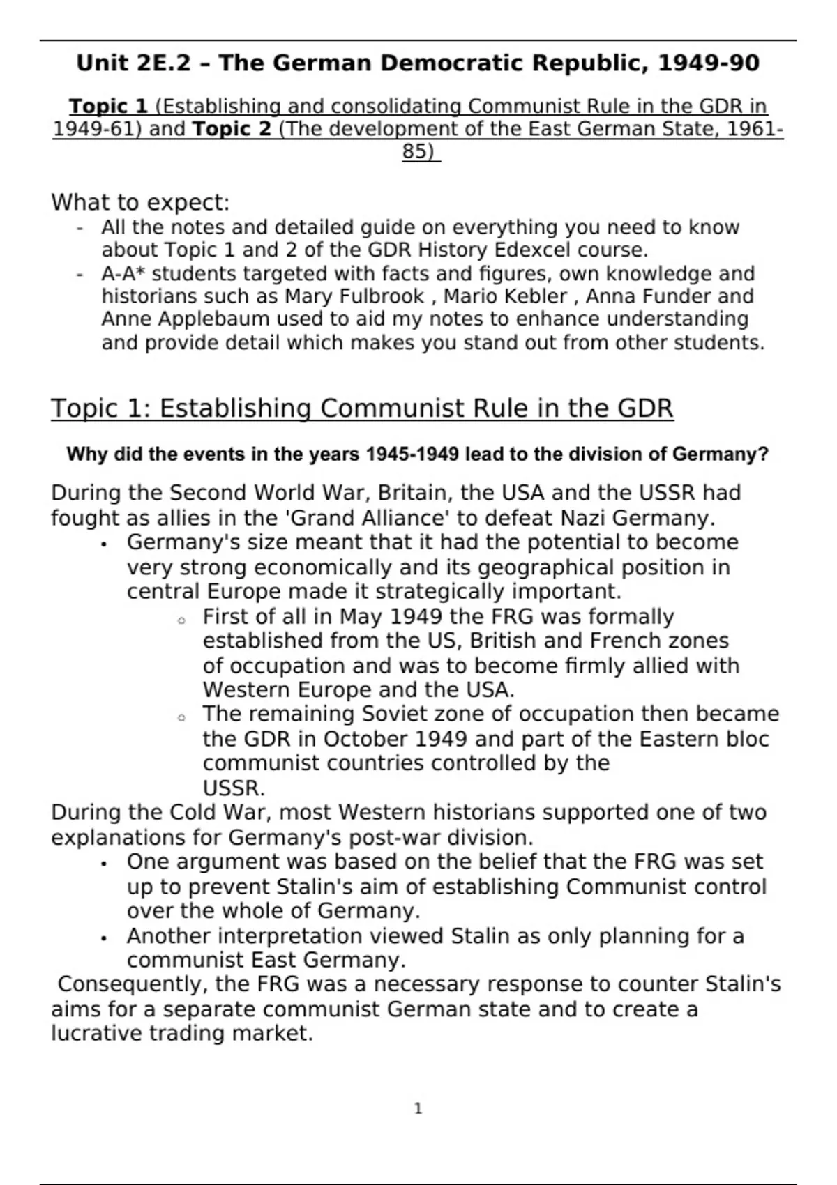 about Topic 1 and 2 of the GDR History Edexcel course.
