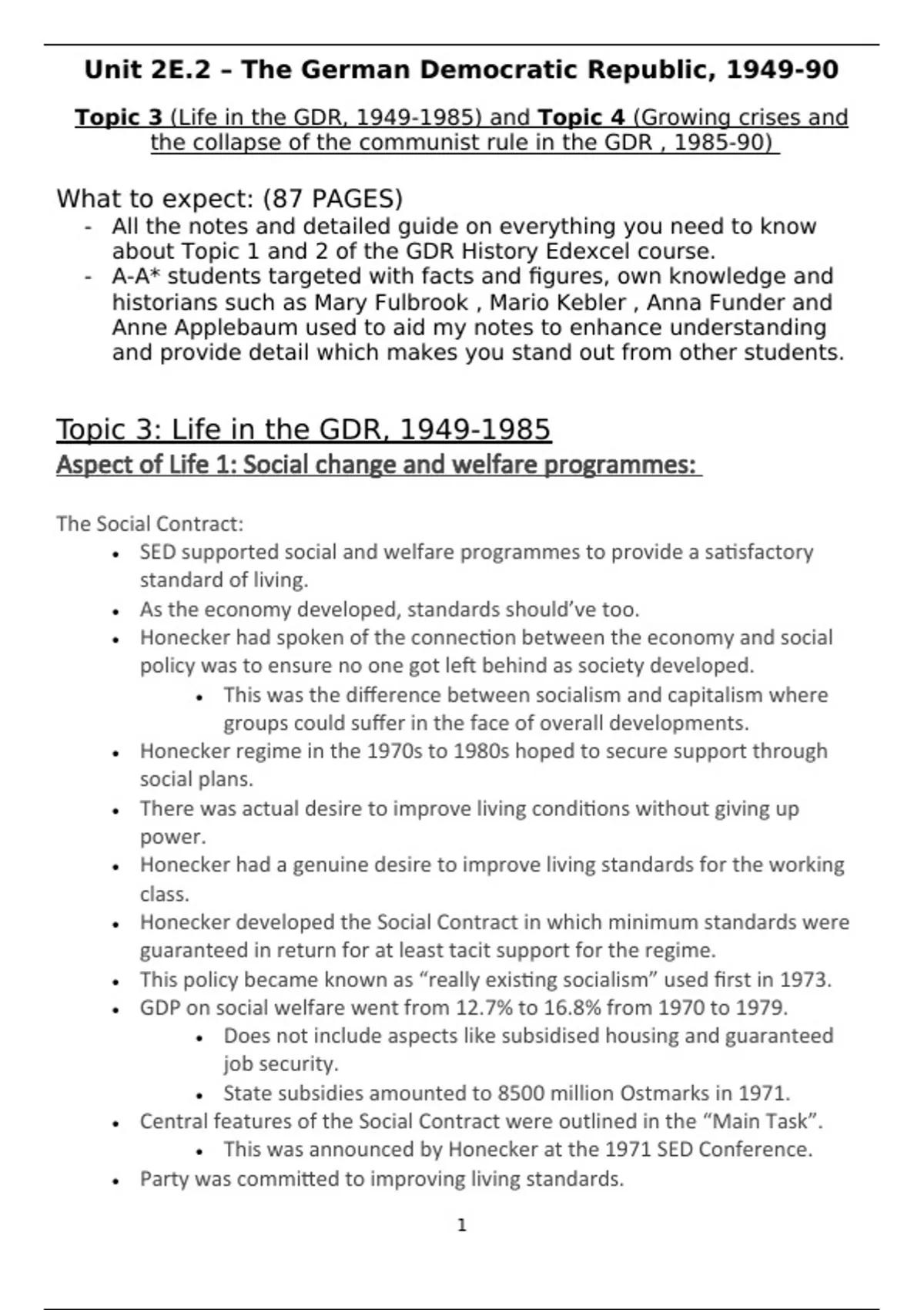 about Topic 1 and 2 of the GDR History Edexcel course.