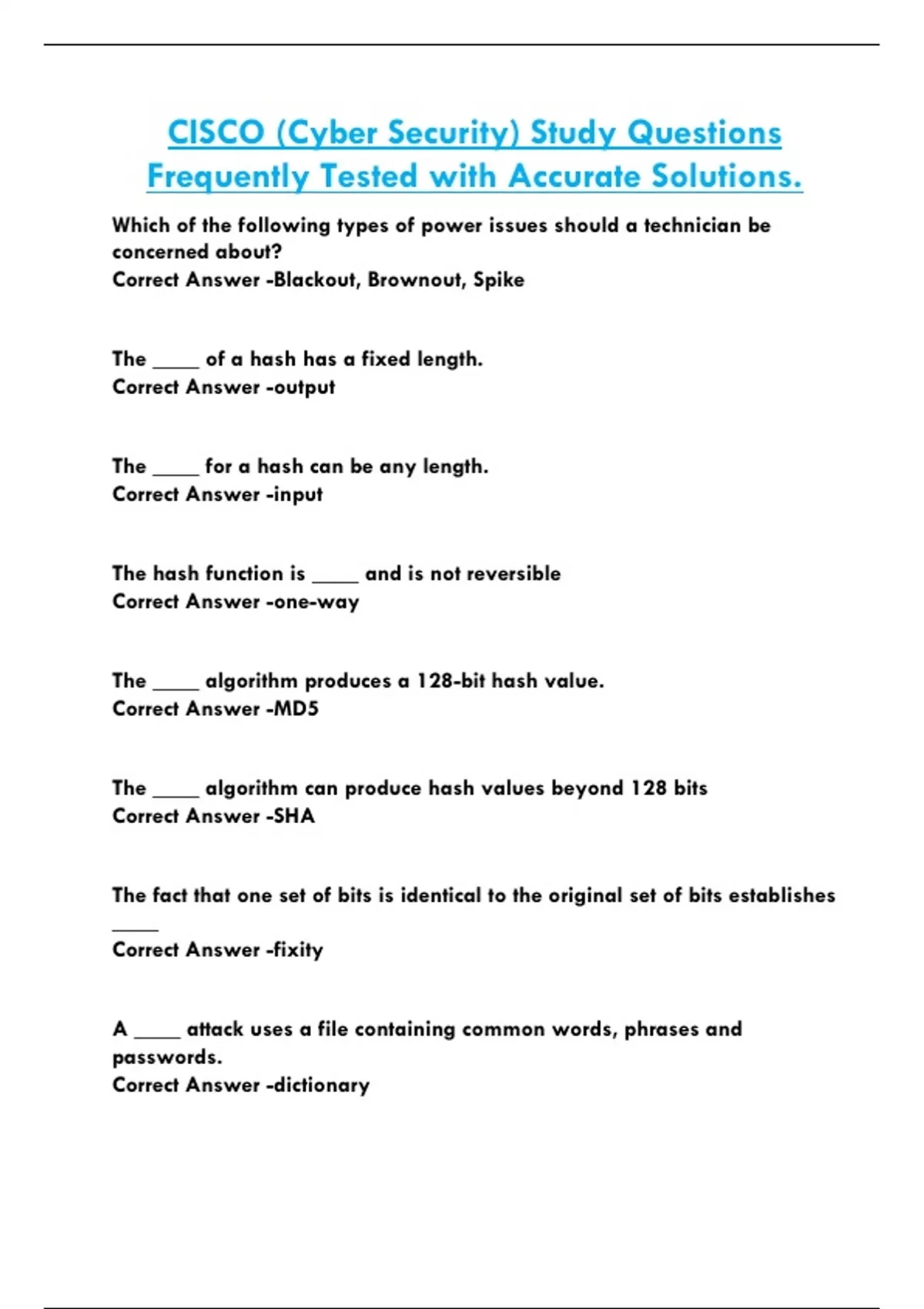 CISCO (Cyber Security) Study Questions Frequently Tested with Accurate Solutions.