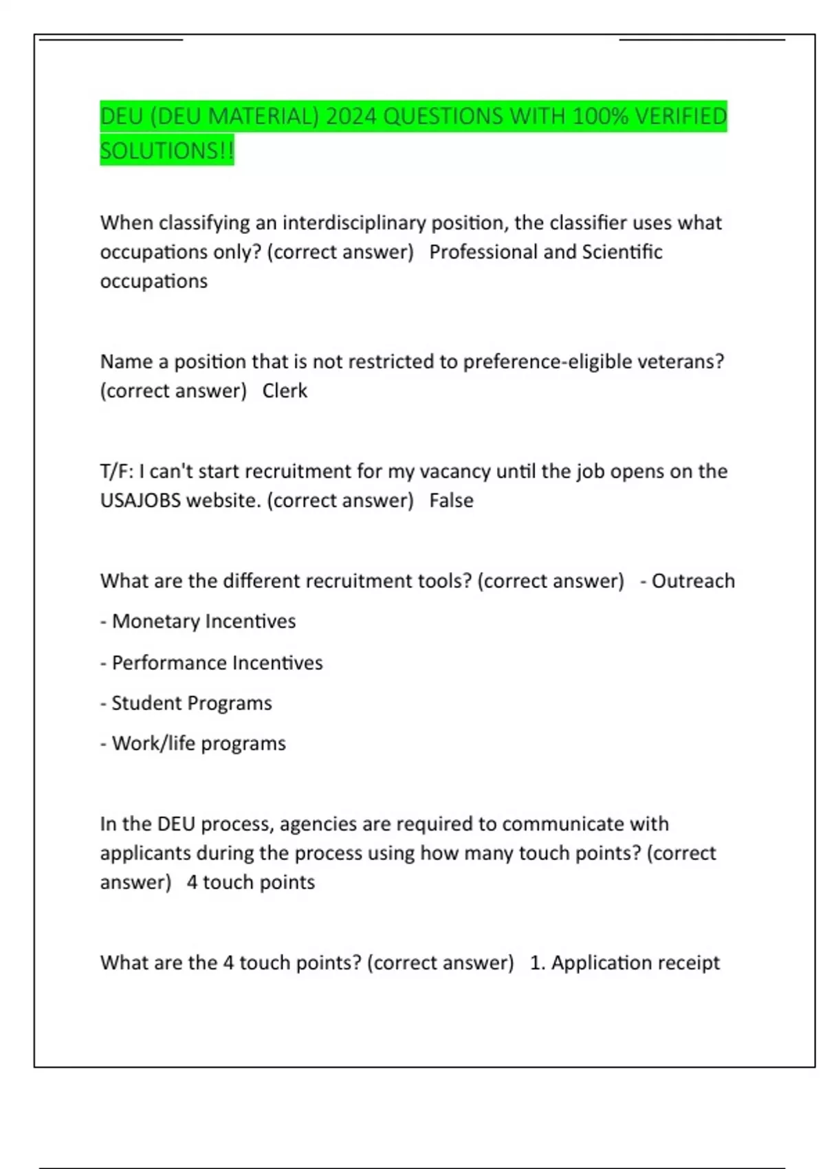 DEU (DEU MATERIAL) 2024 QUESTIONS WITH 100% VERIFIED SOLUTIONS!!