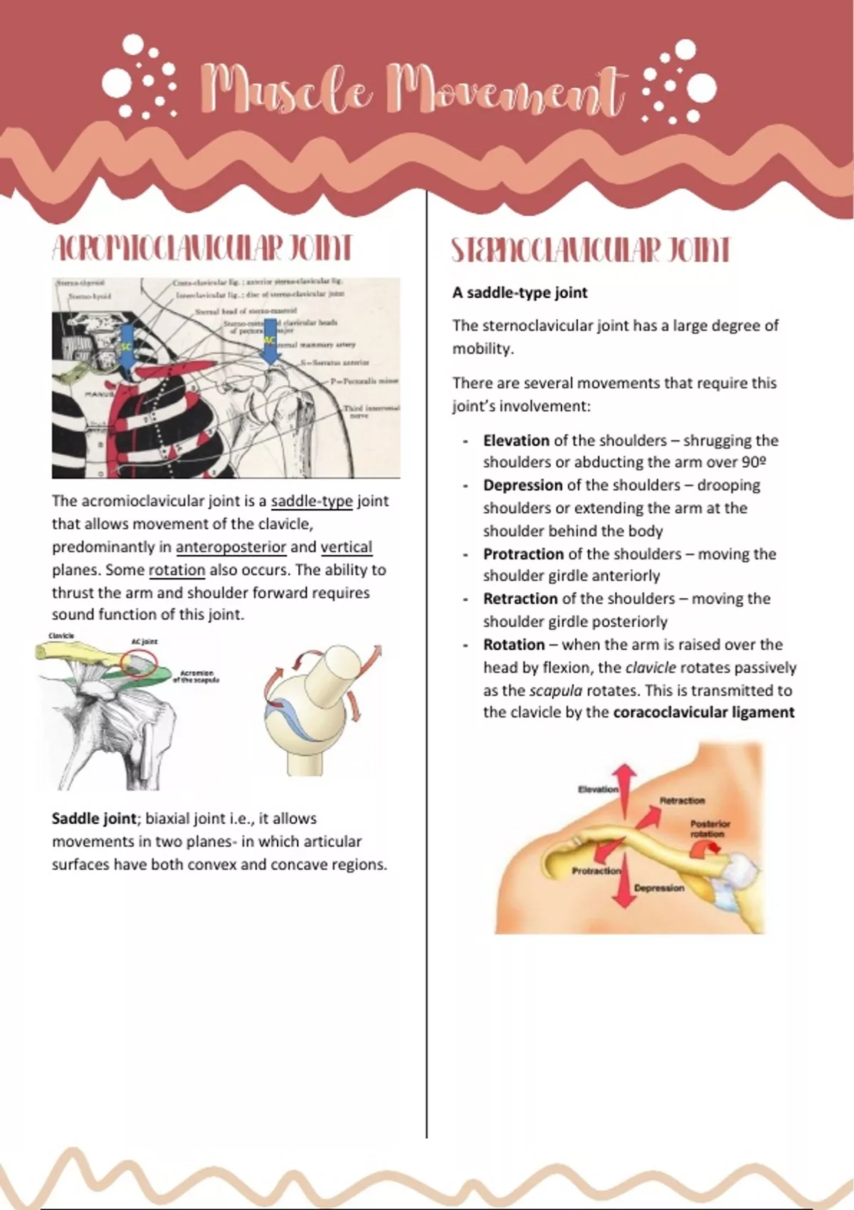The acromioclavicular joint is a saddle-type joint shoulders or extending the arm at the